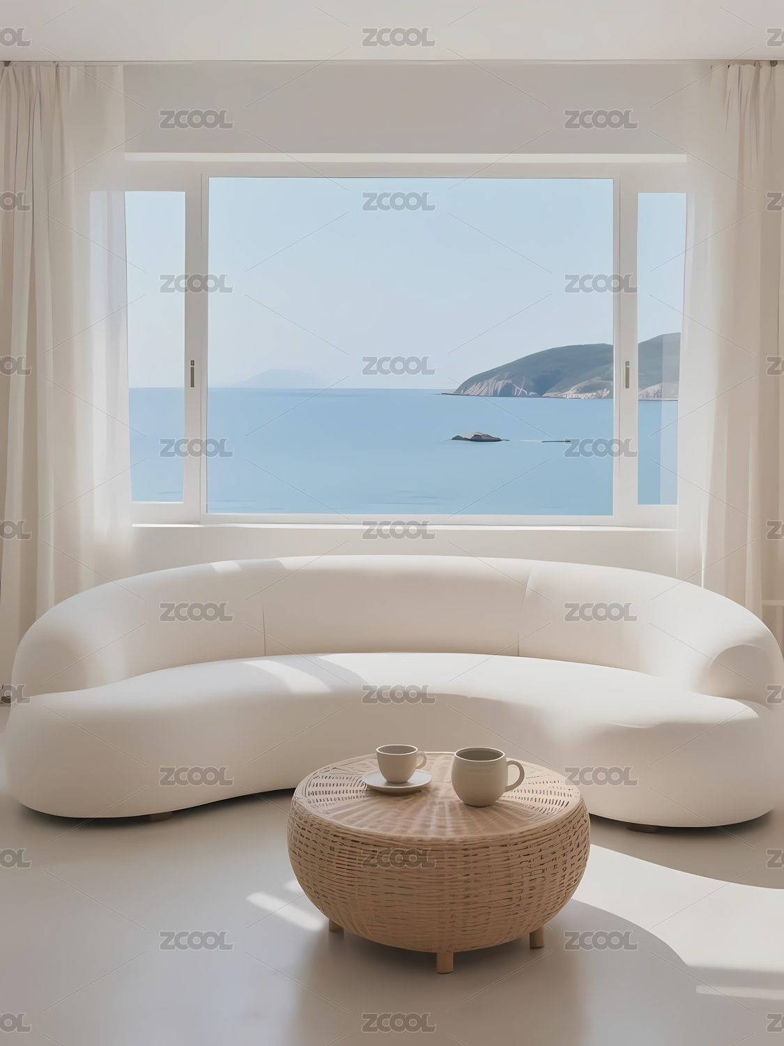 现代,简约,沙发,海景,客厅,圆形,茶几,窗户,海洋,蓝天