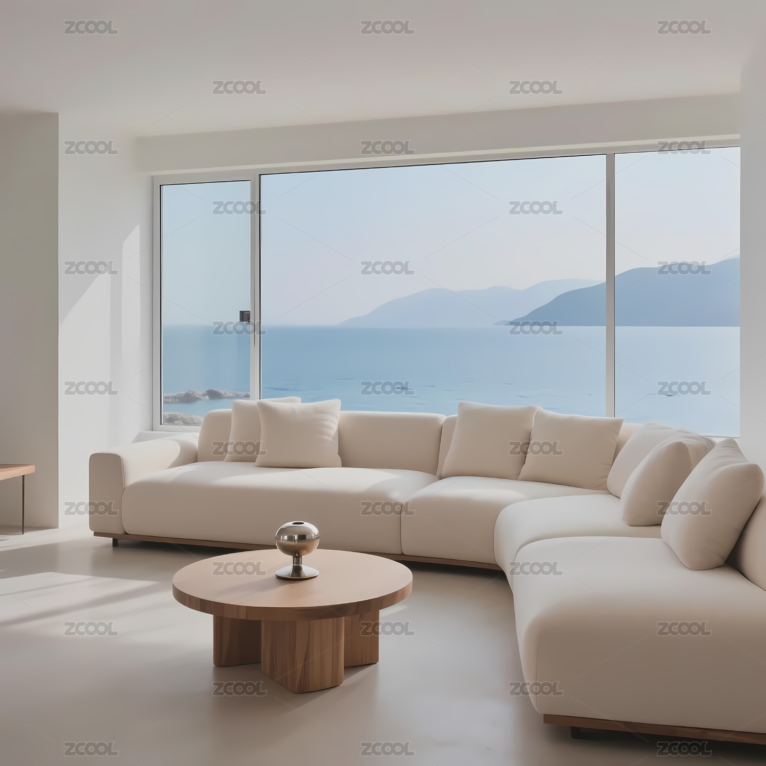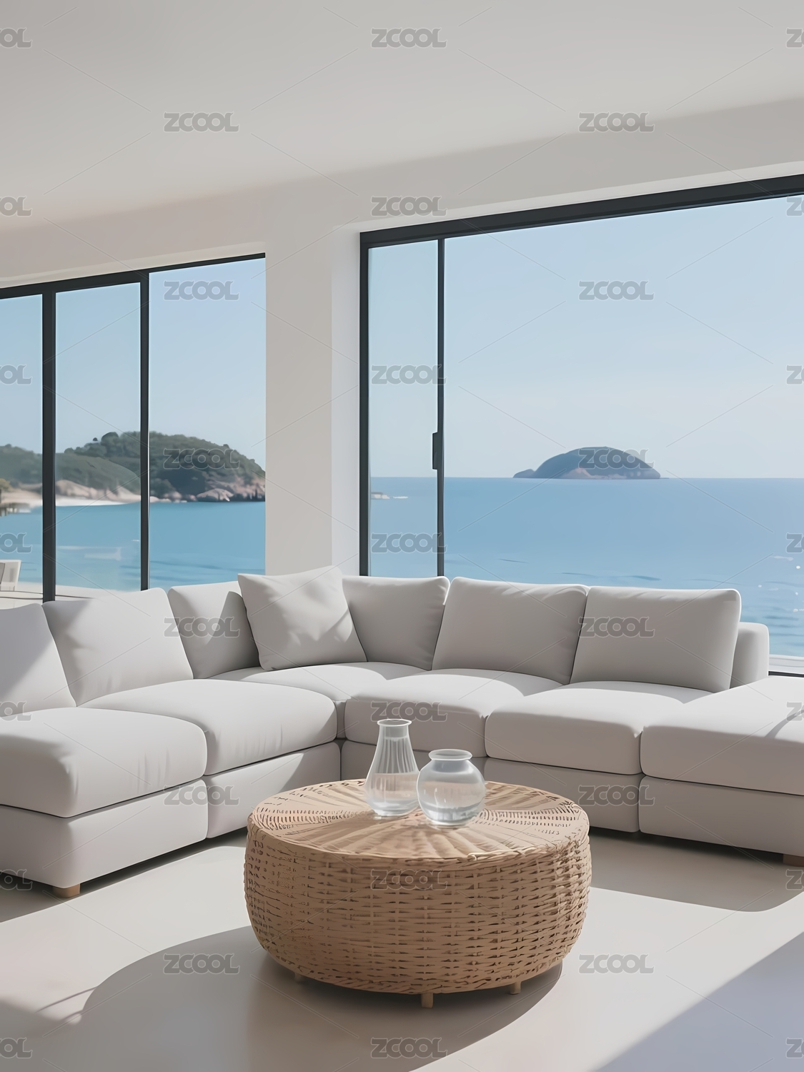客厅,沙发,海景,窗户,现代,简约,家具,圆形,茶几,宽敞
