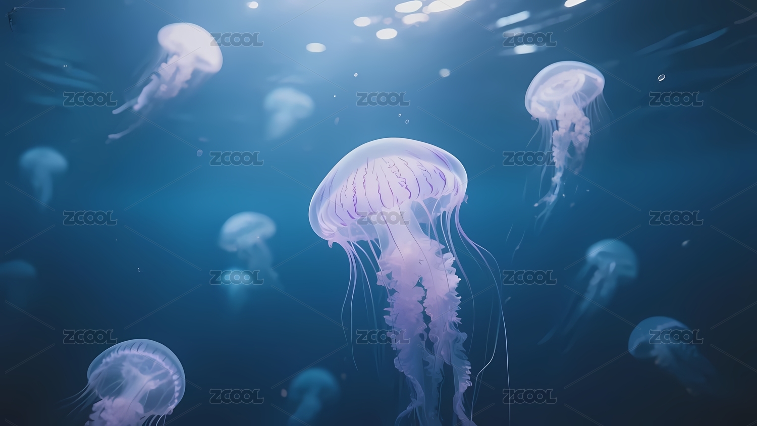 海洋,水下,生物,生态,触须,自然,美丽,水母,漂浮,光影