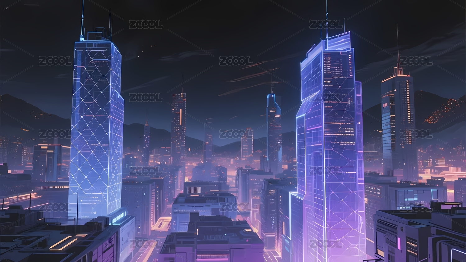 光影,透明,背景,未来,城市,高楼,大厦,夜景,交错,科技