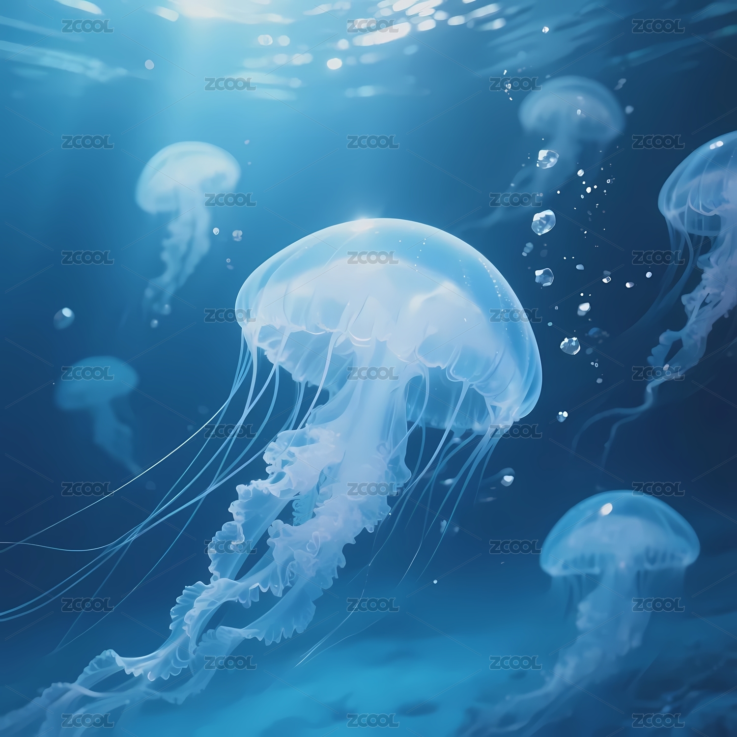 水下漂浮的透明水母群