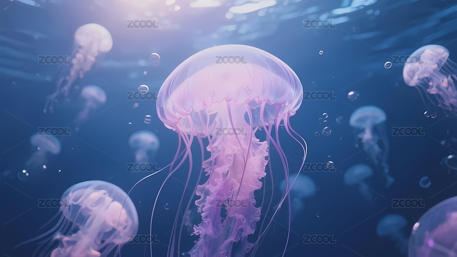 水母,海洋,透明,漂浮,触须,深海,生物,自然,生态,美丽