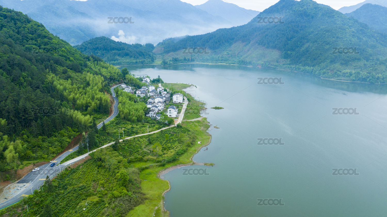 中国浙江省杭州市西湖区双浦镇铜鉴湖航拍
