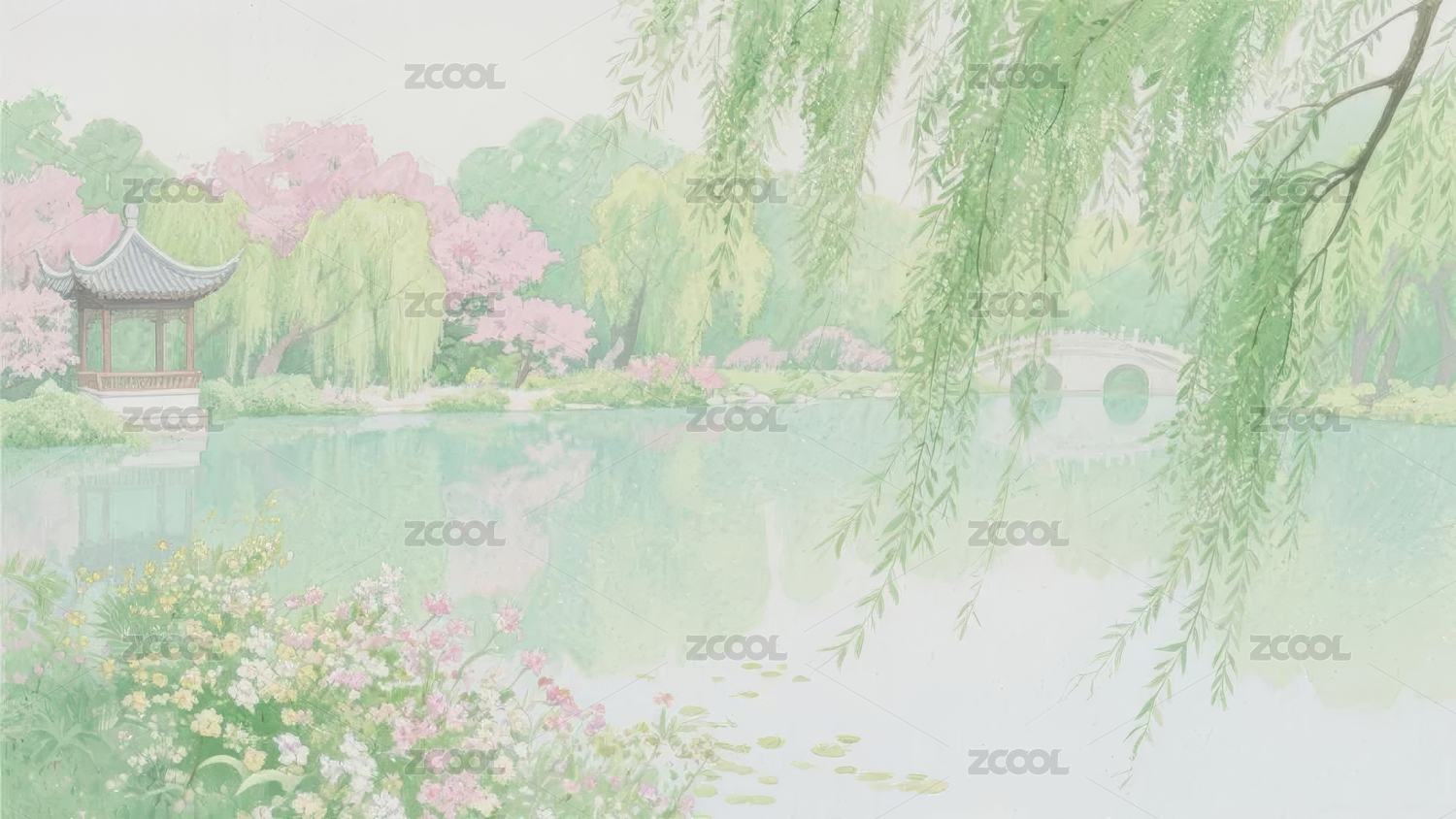 春日湖景清新装饰场景