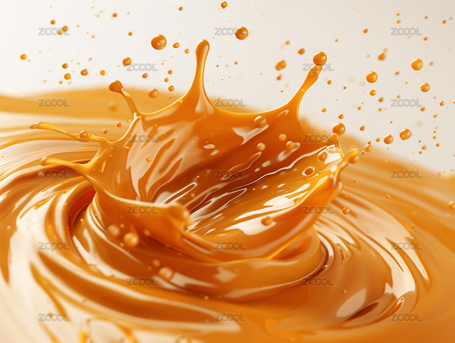 倒牛奶溅起的水珠和波纹,近景,牛奶饮品广