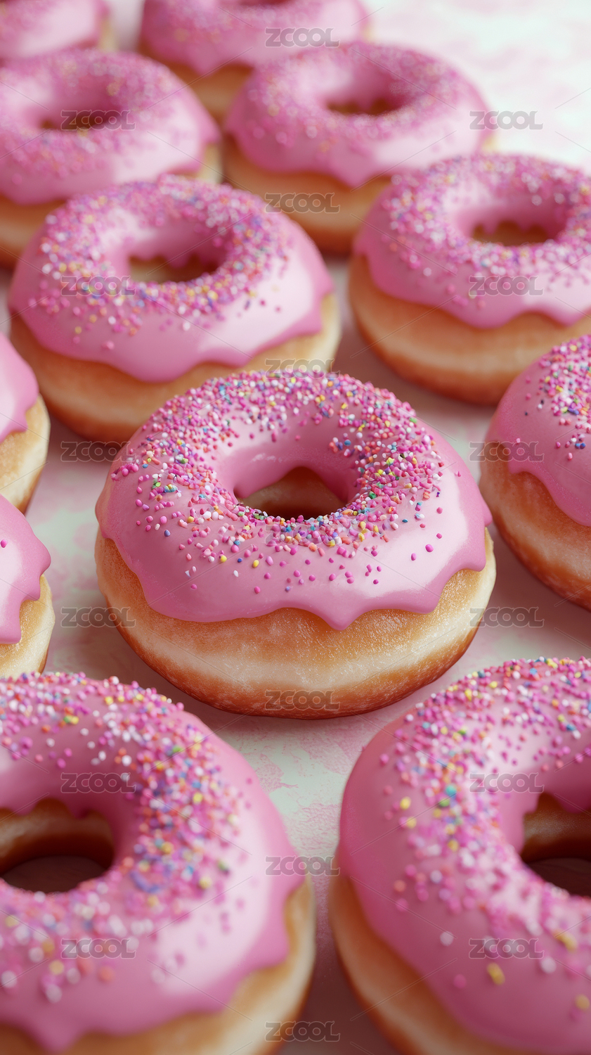 诱人粉色糖霜甜甜圈