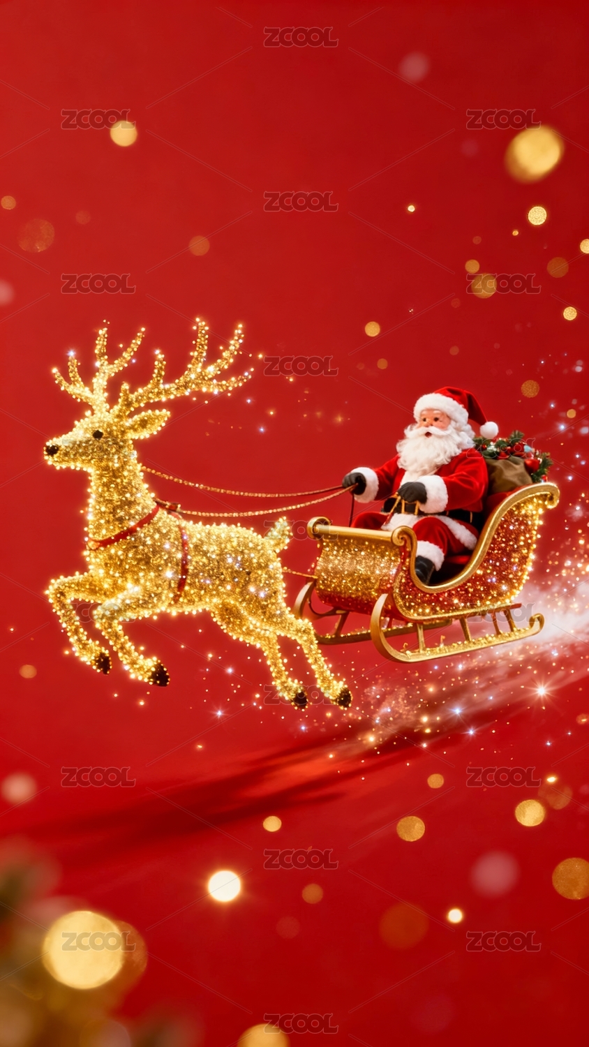 圣诞老人乘坐驯鹿雪橇飞驰