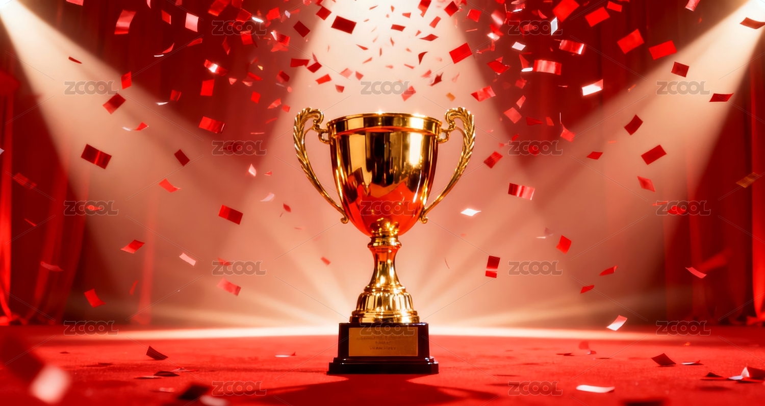金光闪闪的奖杯配红色丝带