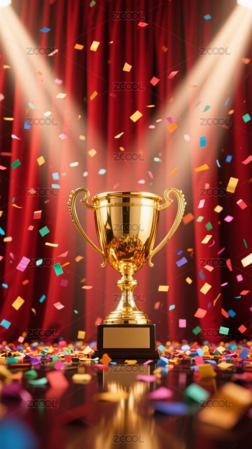 金色奖杯喜庆颁奖场景