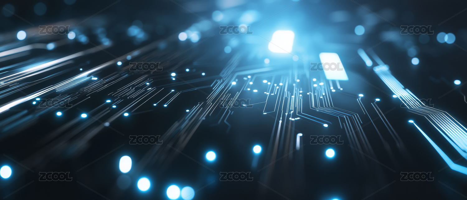 蓝色电路板的科技光影