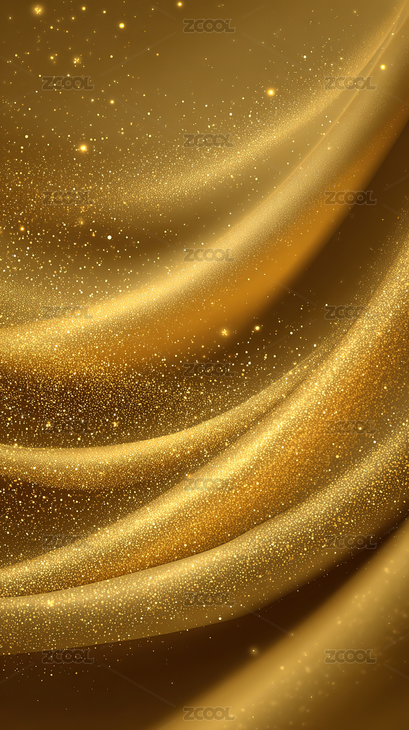 金色波浪与闪耀光点的抽象背景