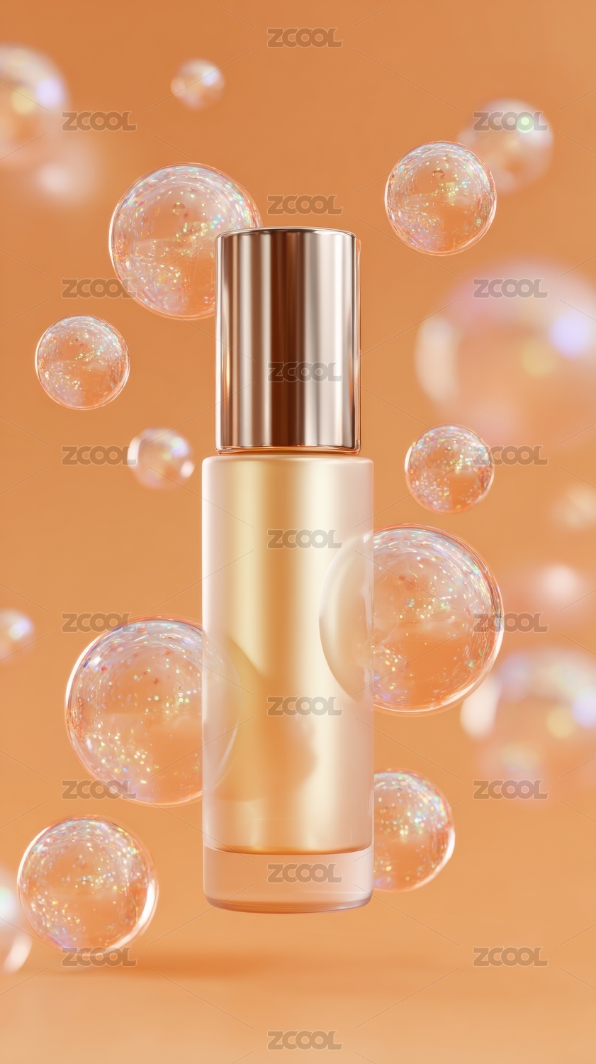金色瓶身与漂浮泡泡的梦幻场景