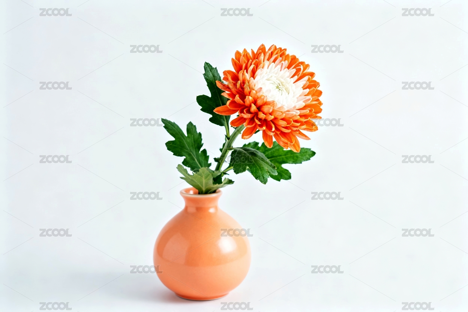 橙色花瓶与花朵装饰