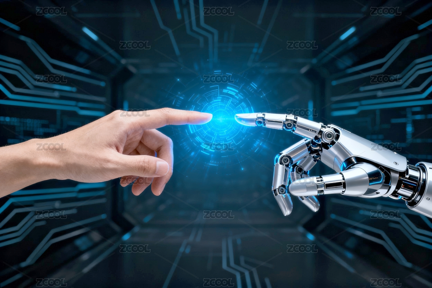 机械臂,机器人,数据流,电路板,芯片,三维,空间,背景,蓝色,互动