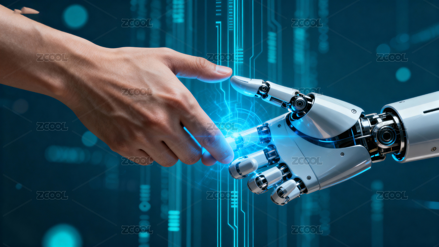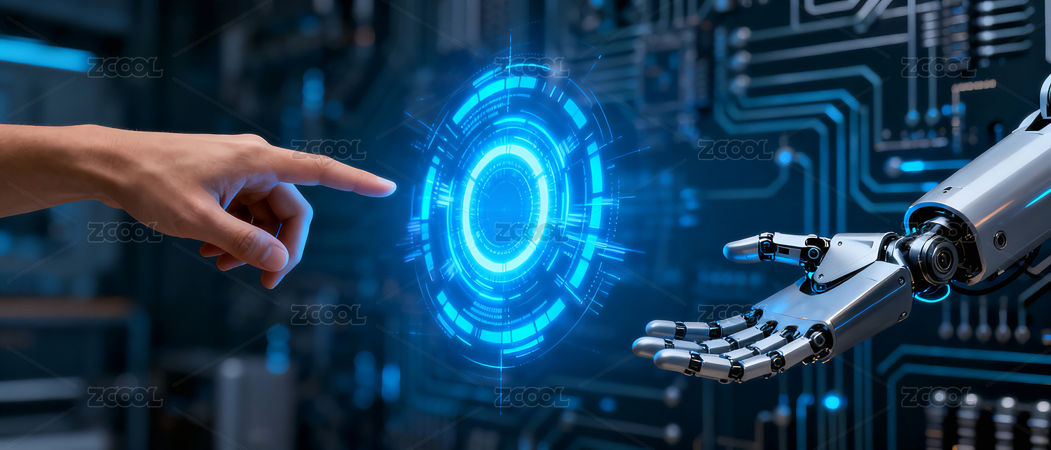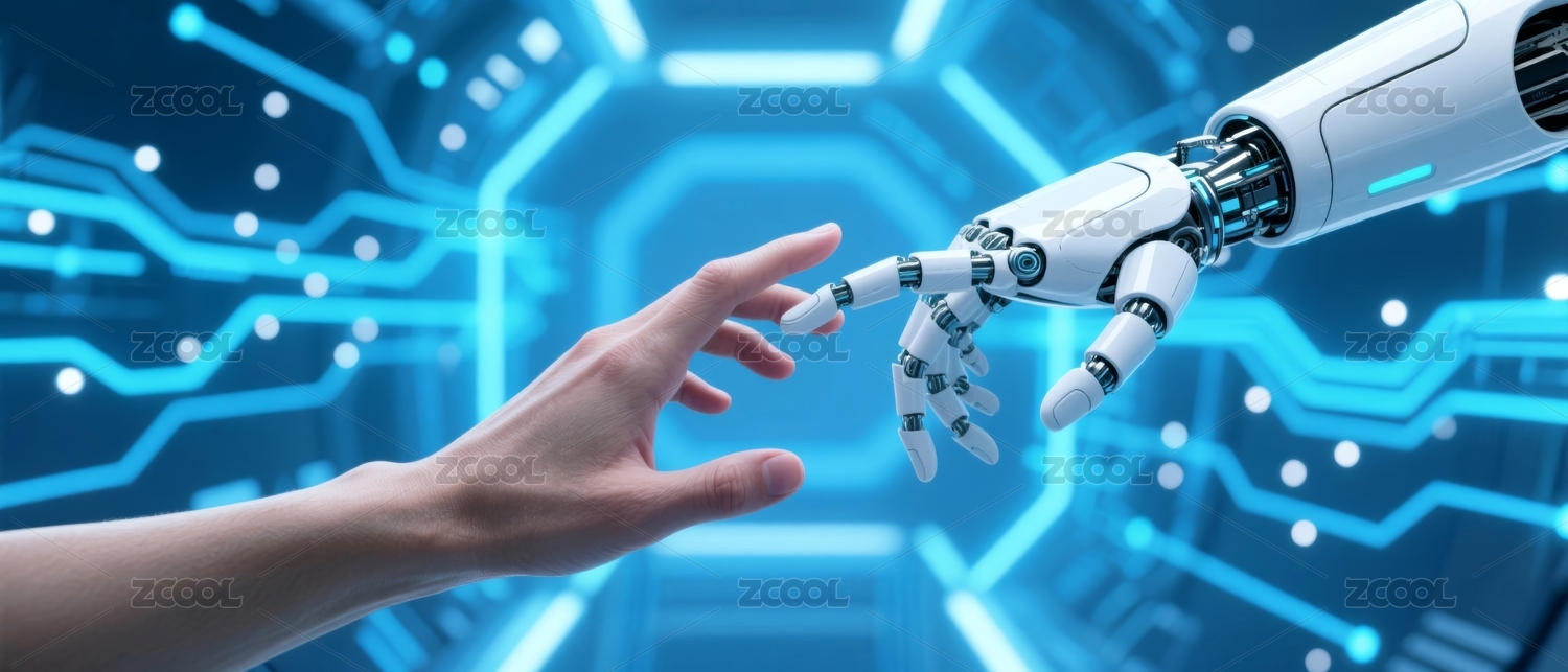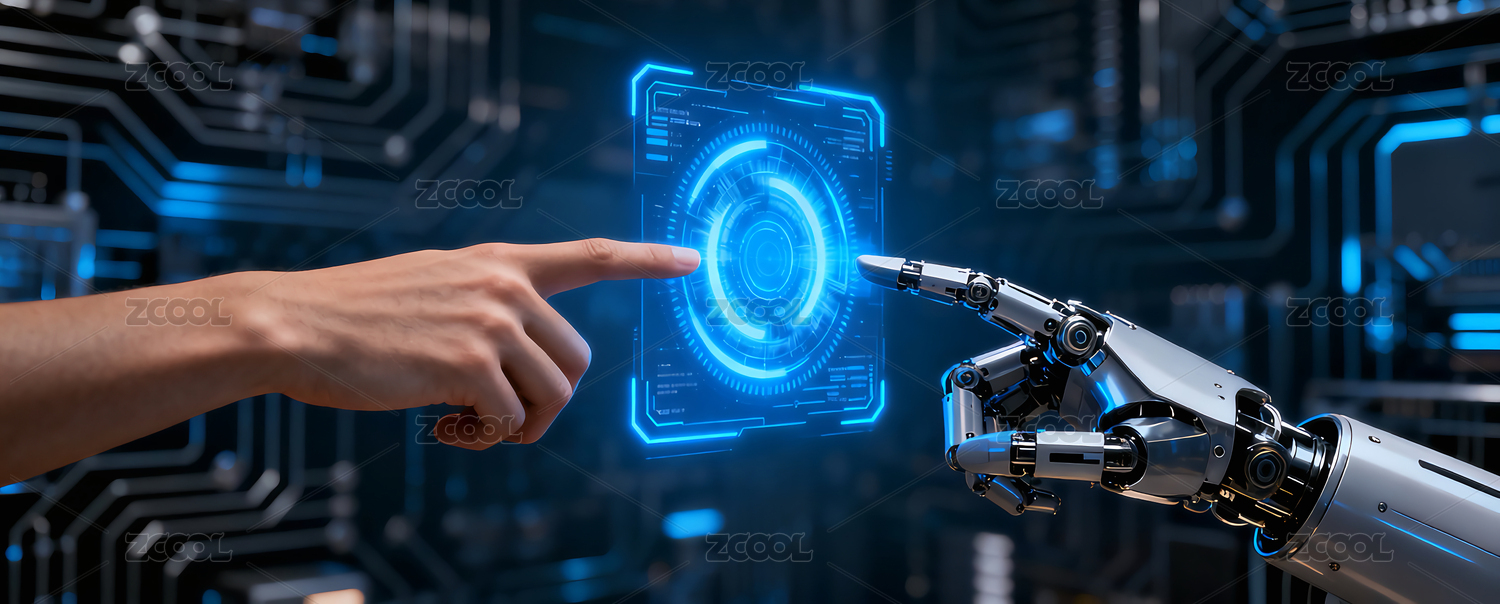机械臂,机器人,数据流,电路板,芯片,三维,空间,背景,蓝色,互动