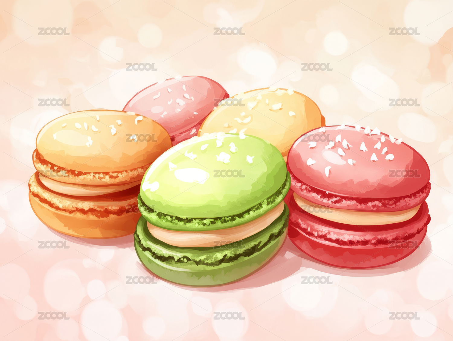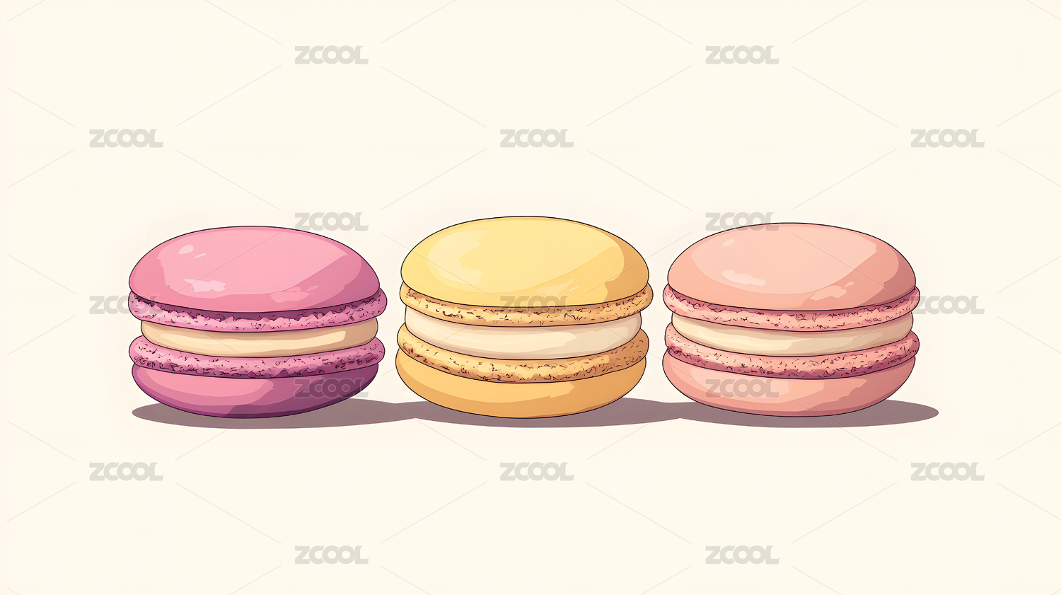 手绘马卡龙甜点插画