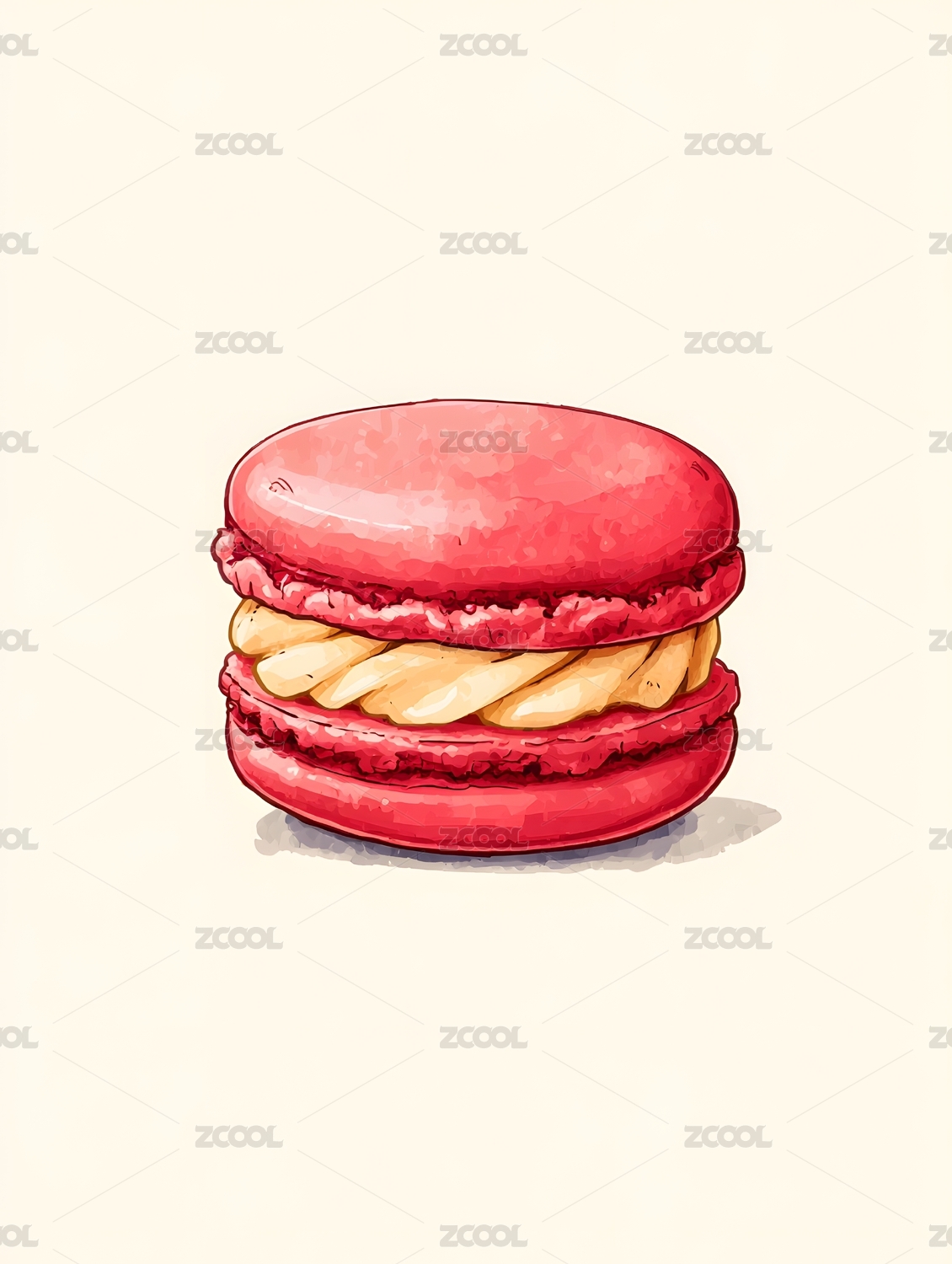 红色夹心马卡龙插画