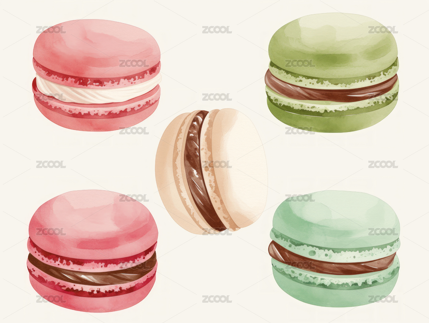 抹茶味马卡龙水彩画