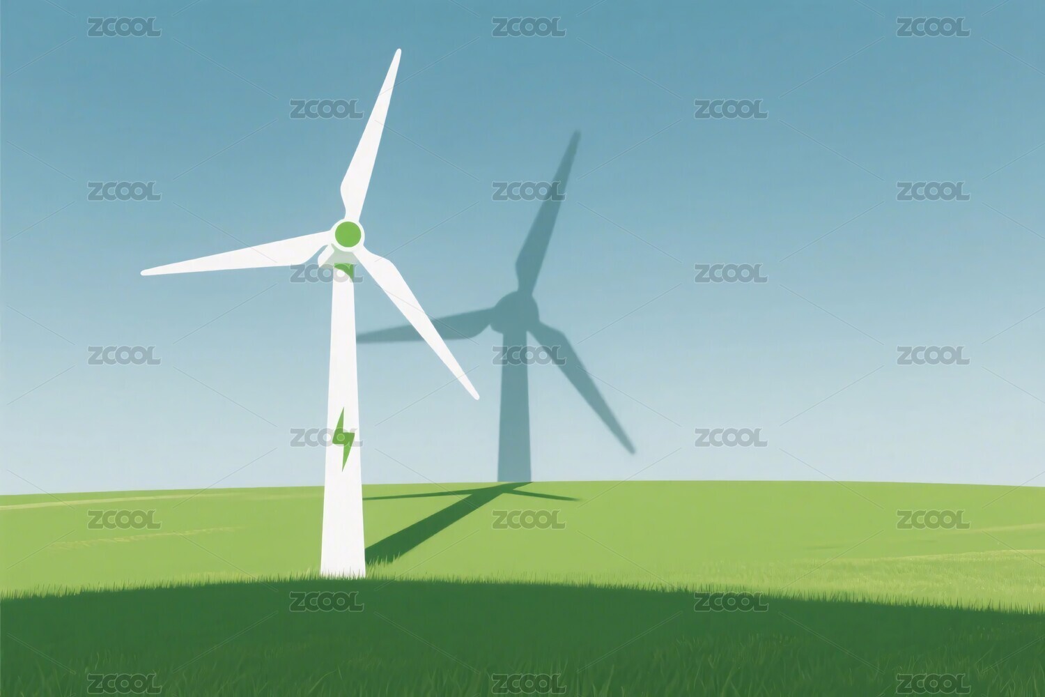 风车,发电,能源,插画,绿色,蓝色,白色,草地,环保,自然