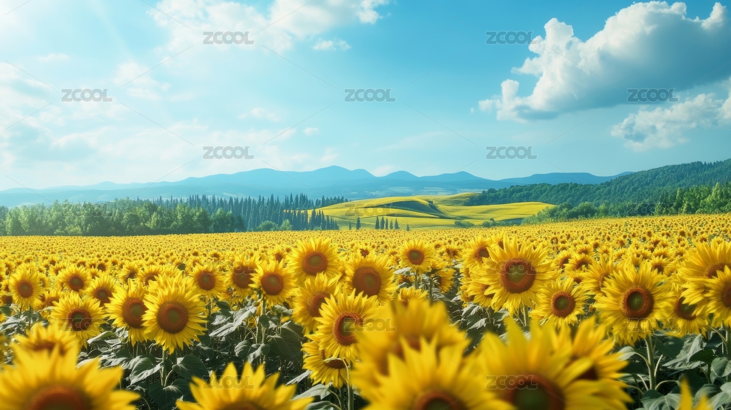 向日葵,背景,概念,插画,花海,田野,阳光,乡村,希望,活力