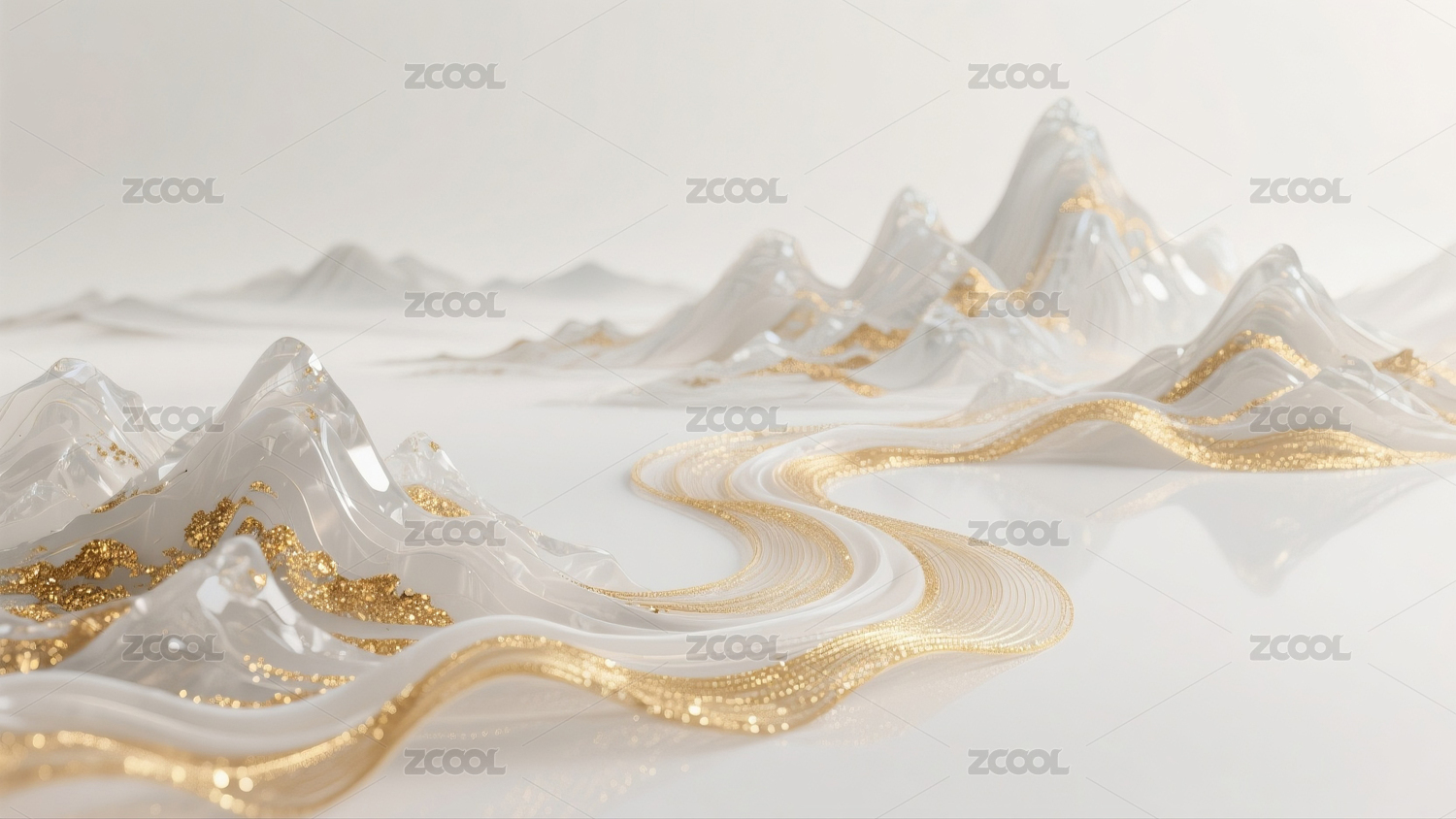 白色玻璃山脉金色线条