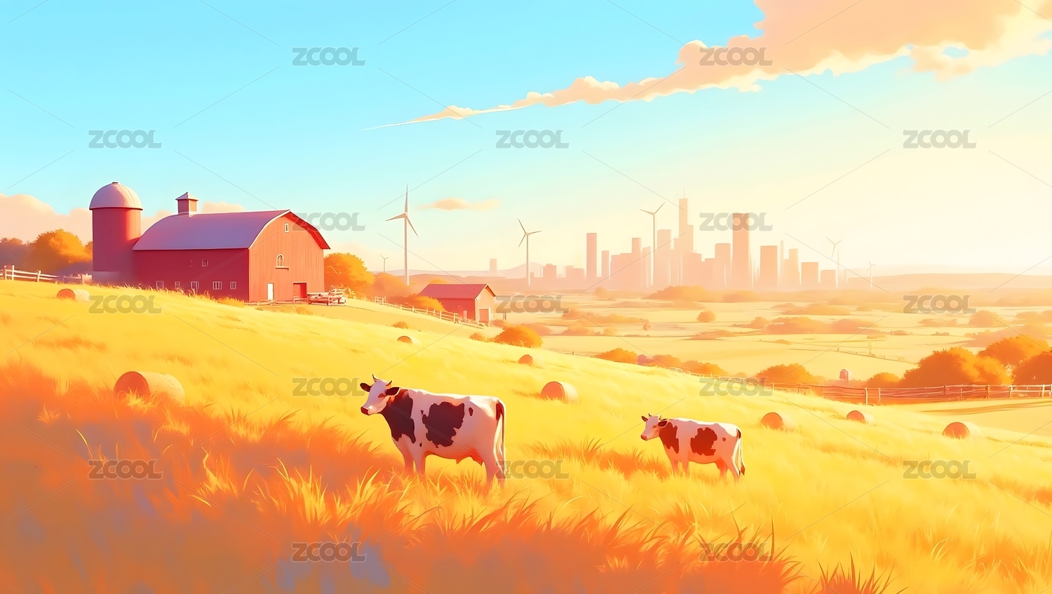 田园风景奶牛插画