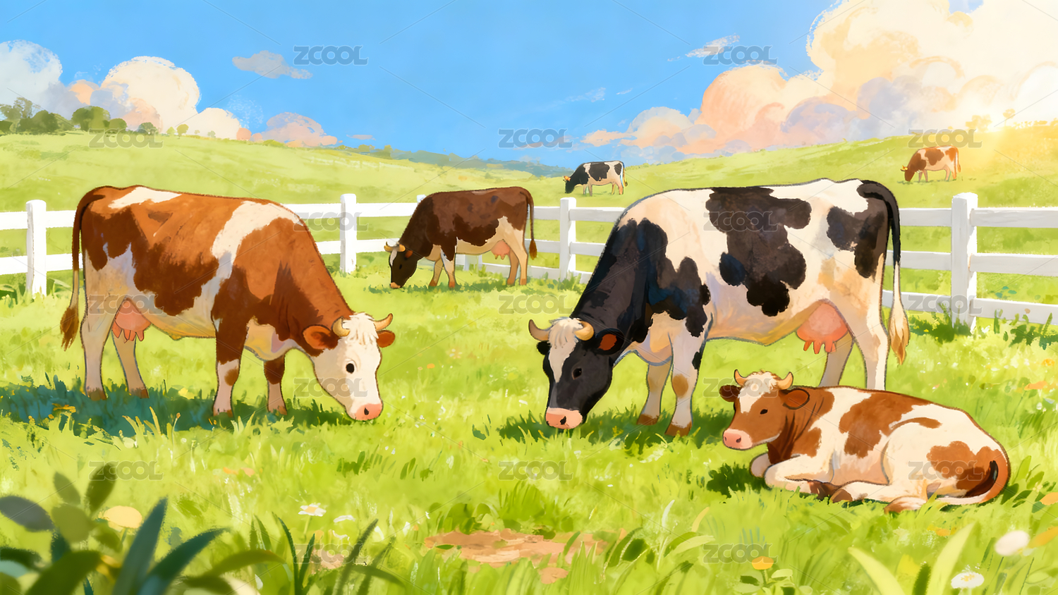 牧场上的奶牛插画