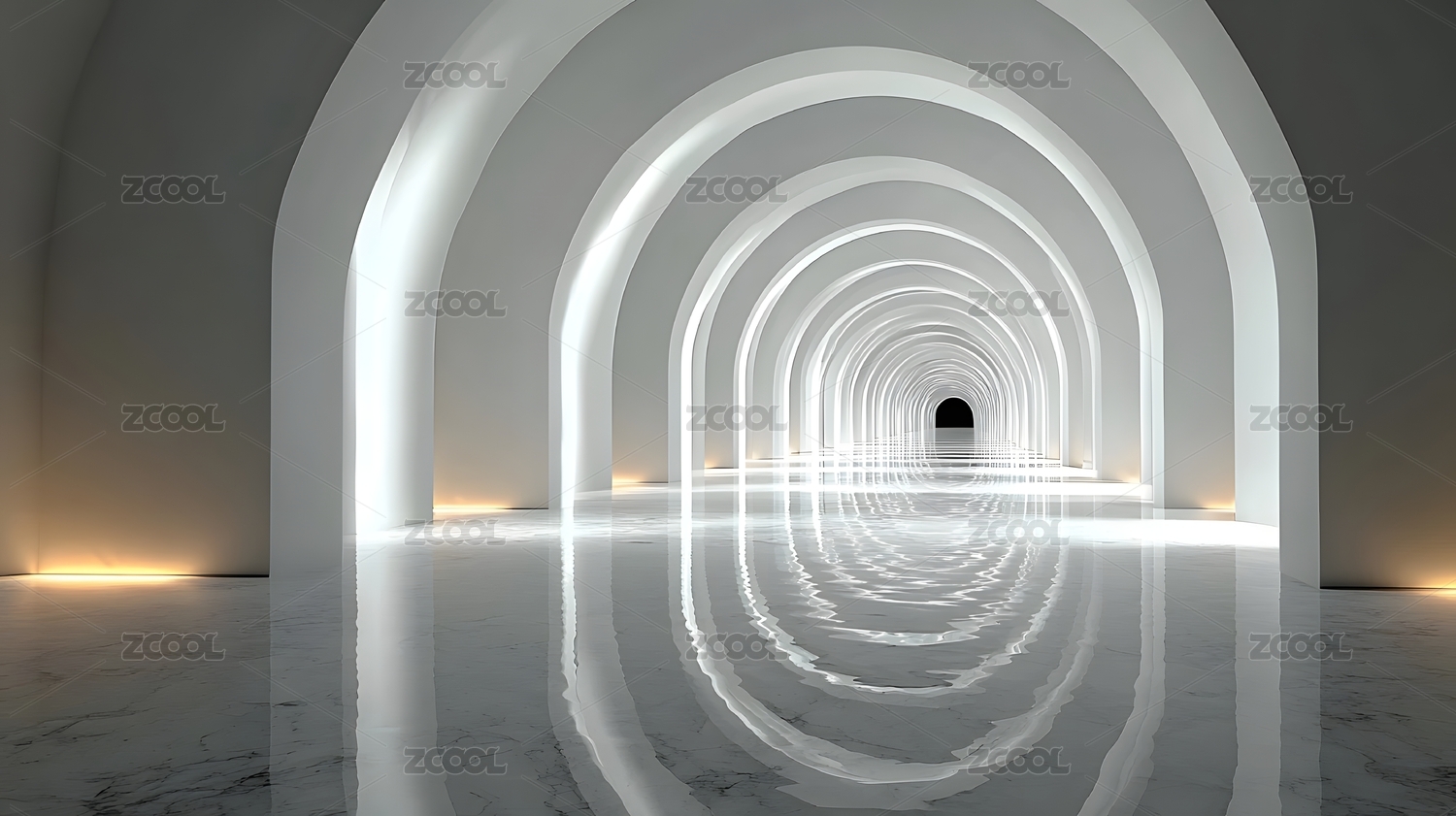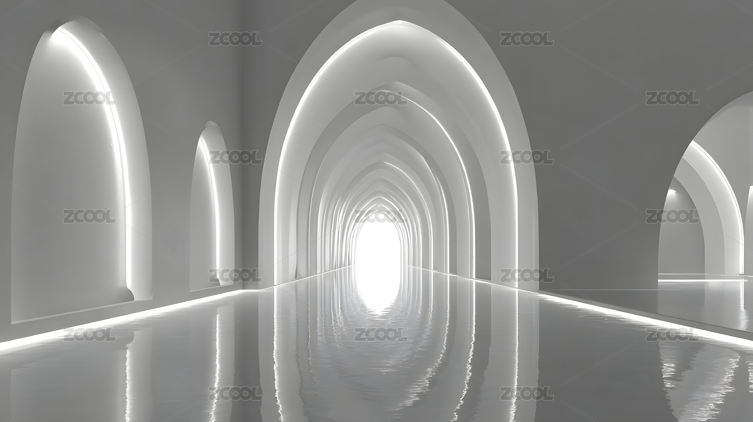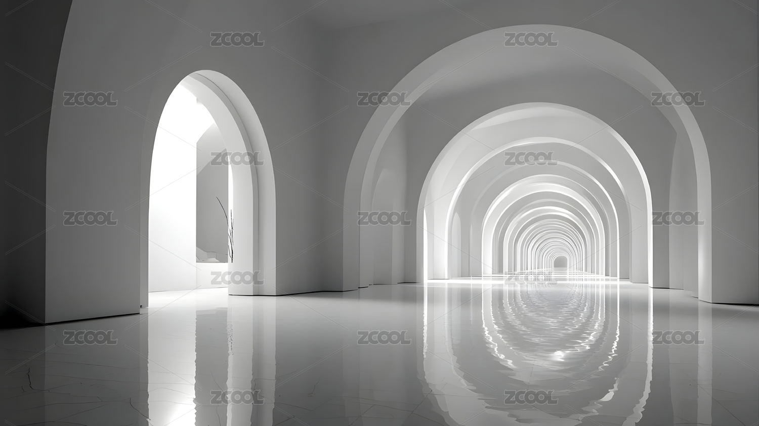 走廊,弧形,白色,光线,地面,反射,隧道,建筑,空间,设计
