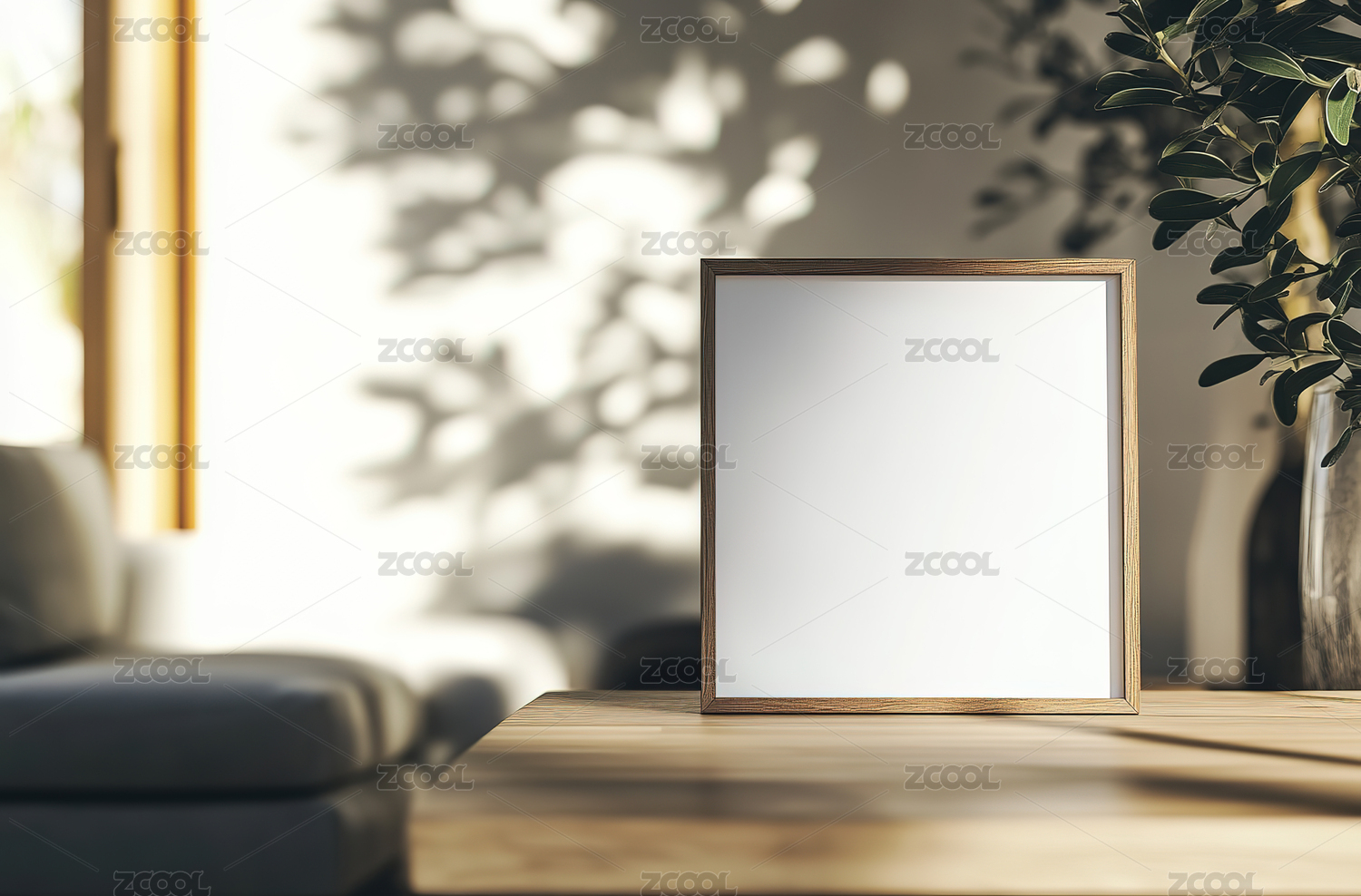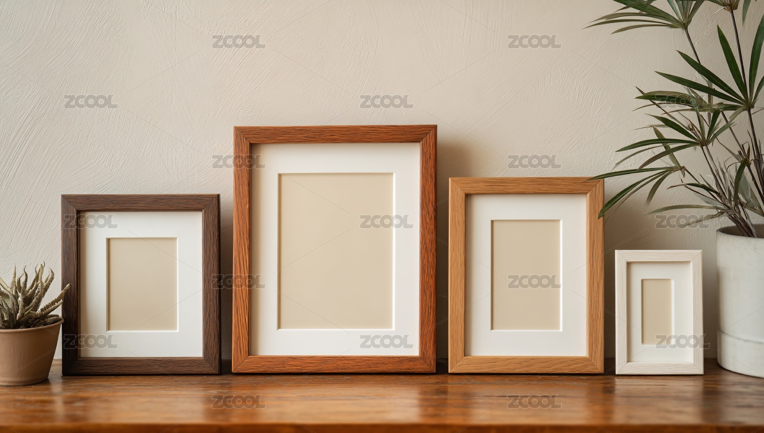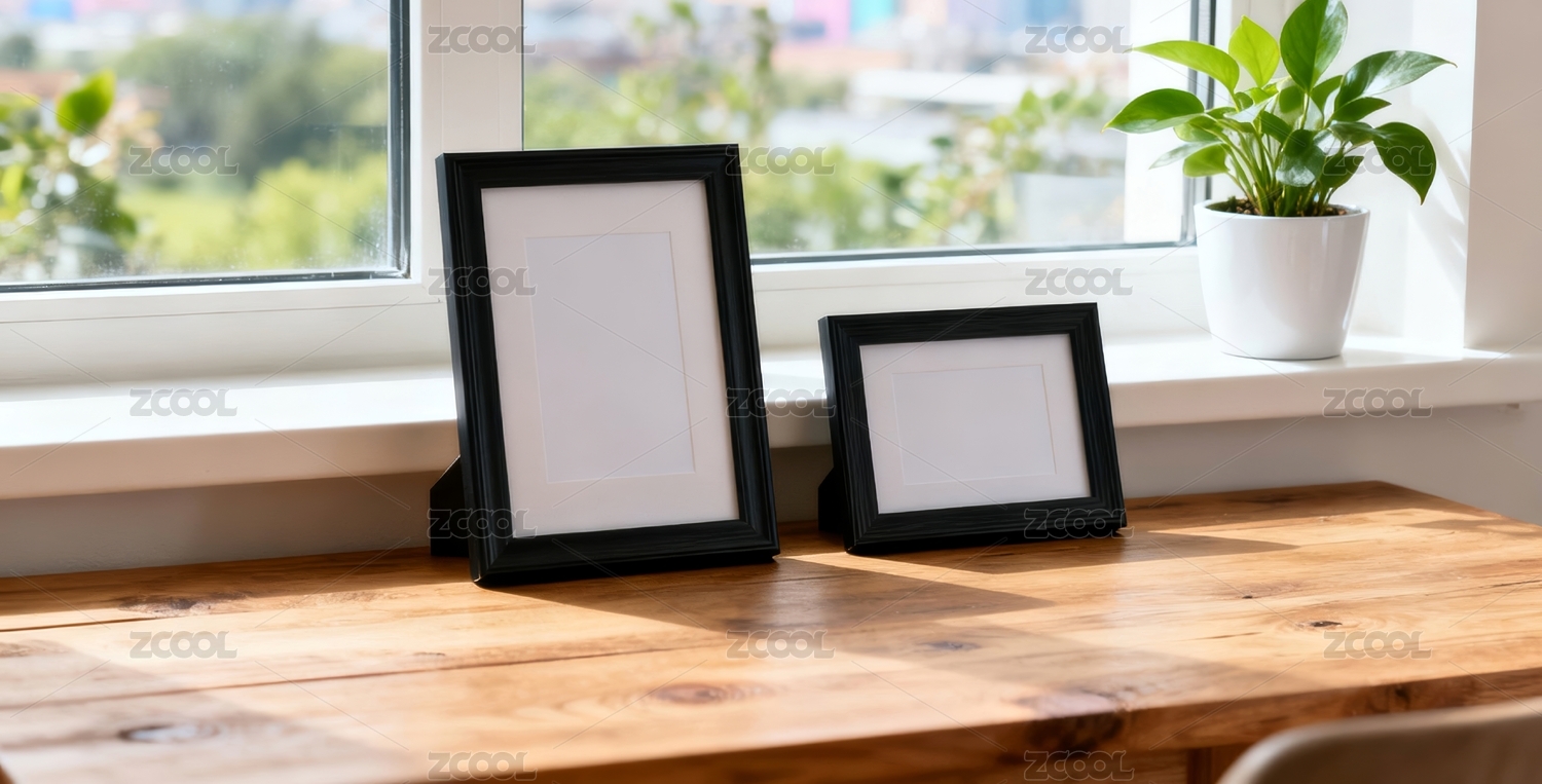 木框相框与绿植装饰场景