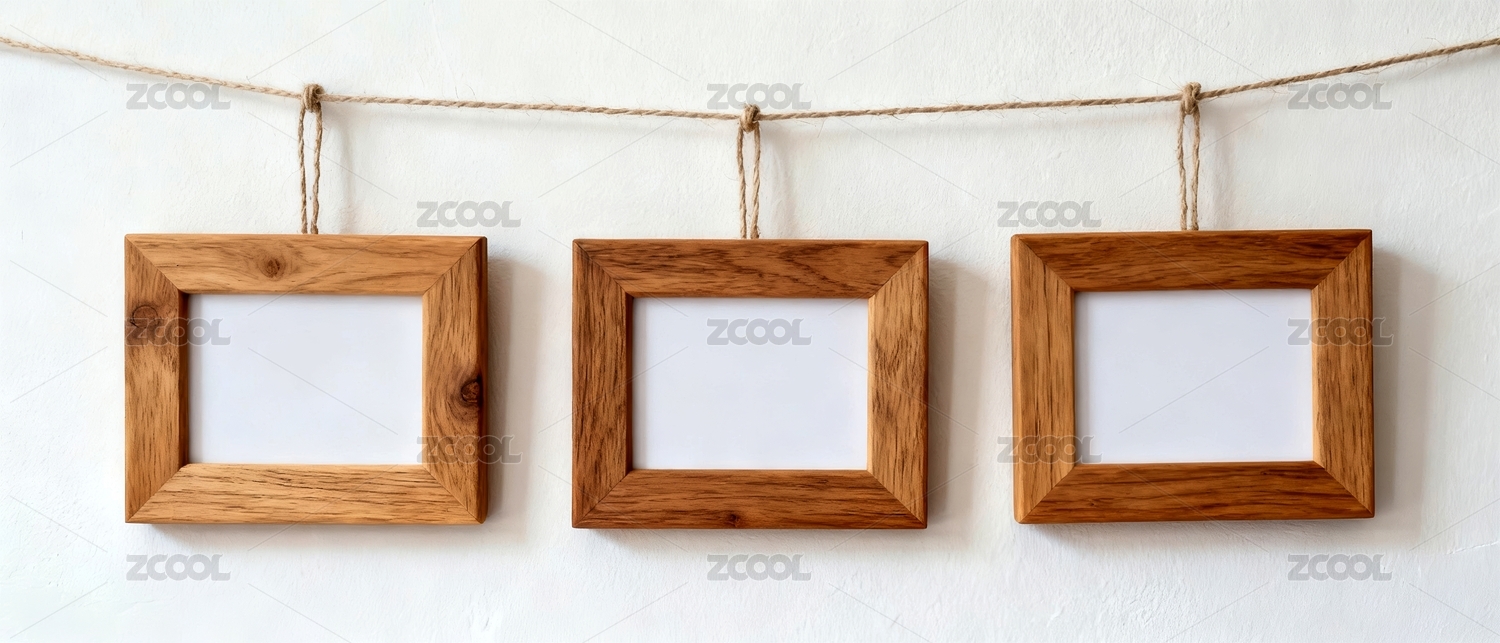 木相框整齐摆放在木质桌面上