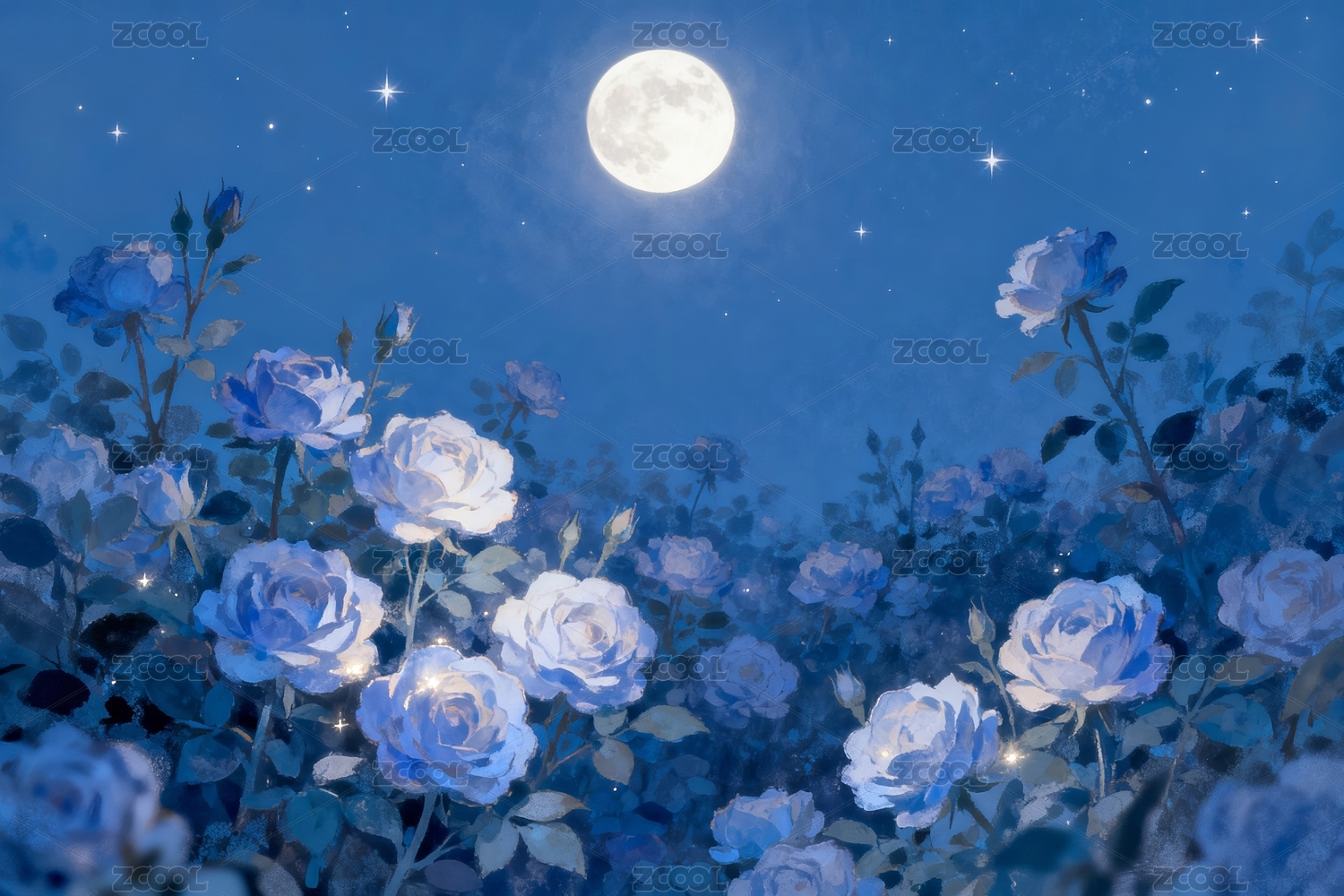 主视觉,商业,壁纸,设计,梦幻,花海,星空,圆月,浪漫,唯美
