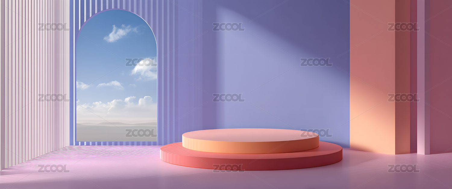 粉云环绕的圆形多层展台