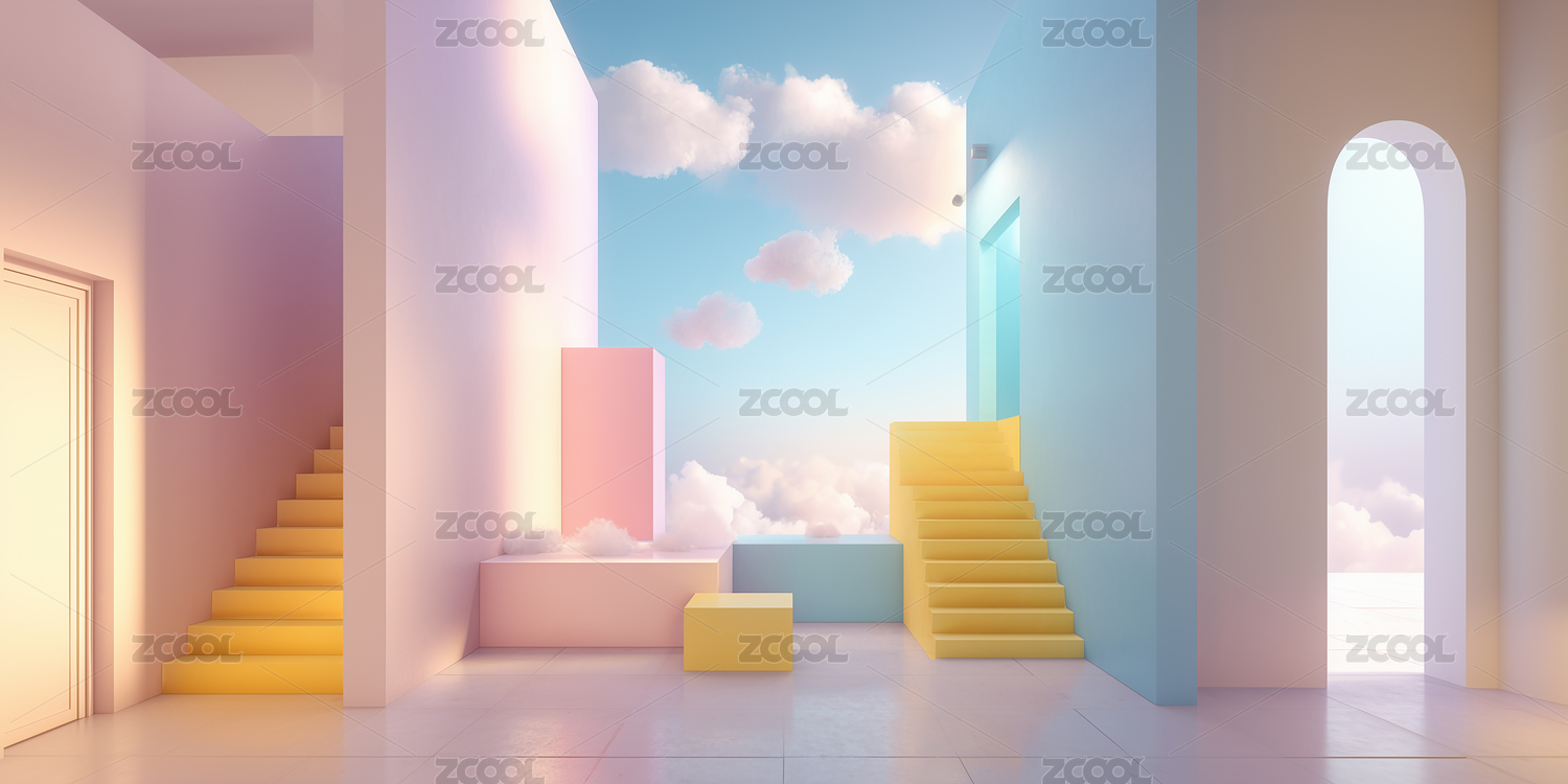 几何舞台彩块云朵