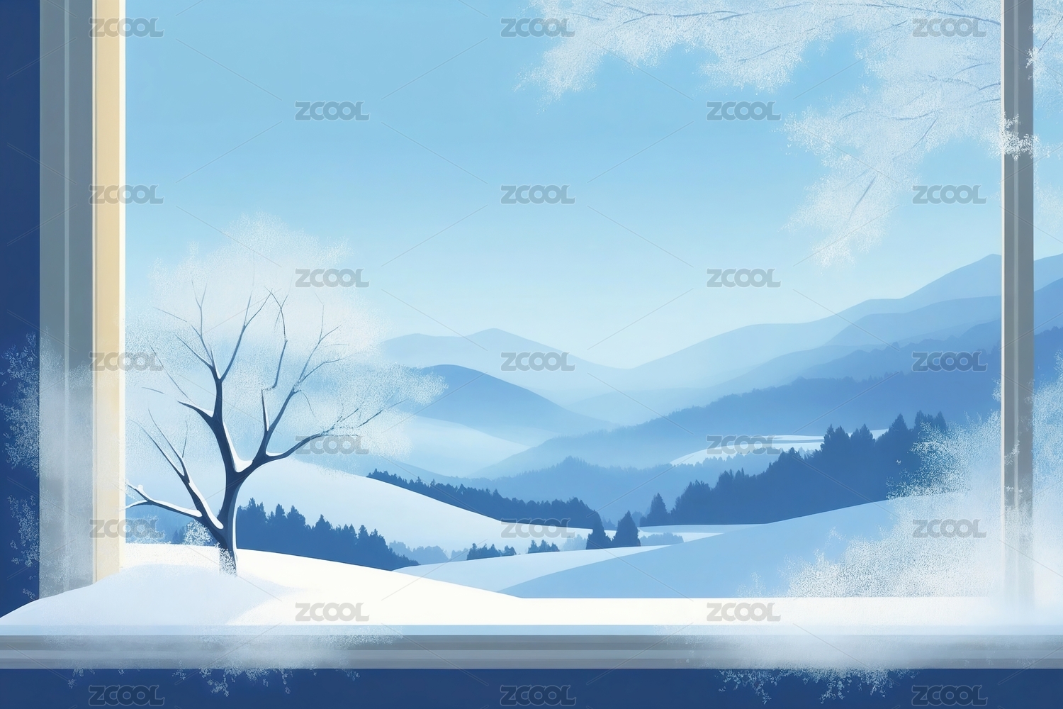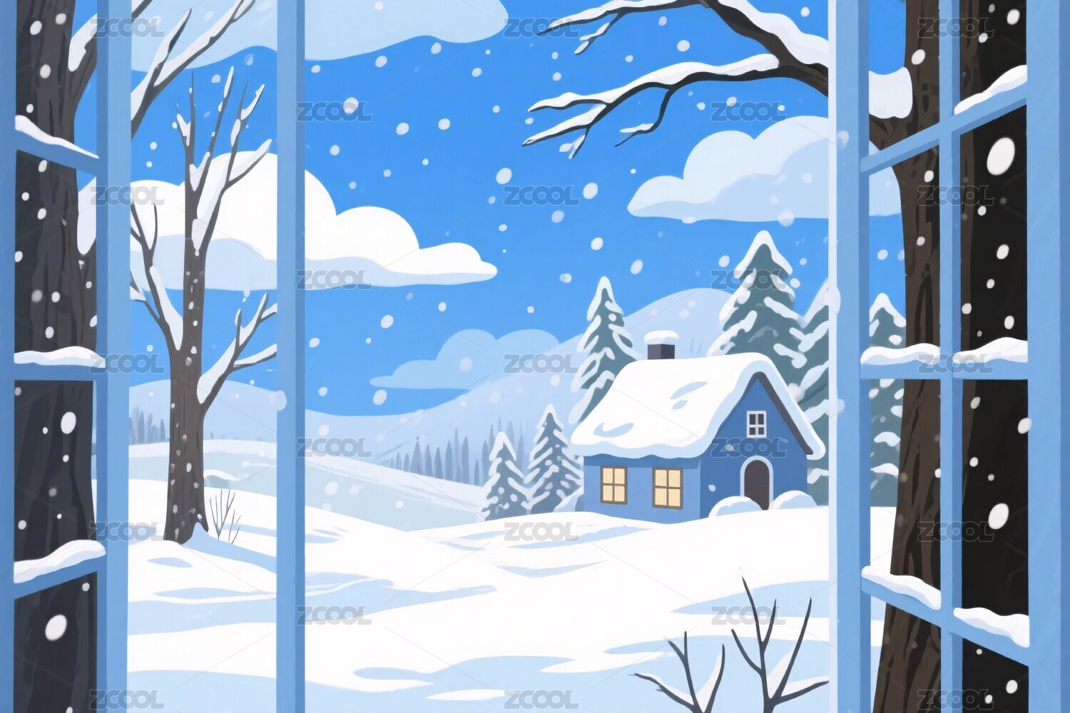 冬日雪景窗外插画