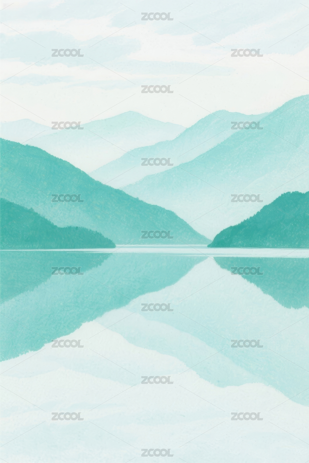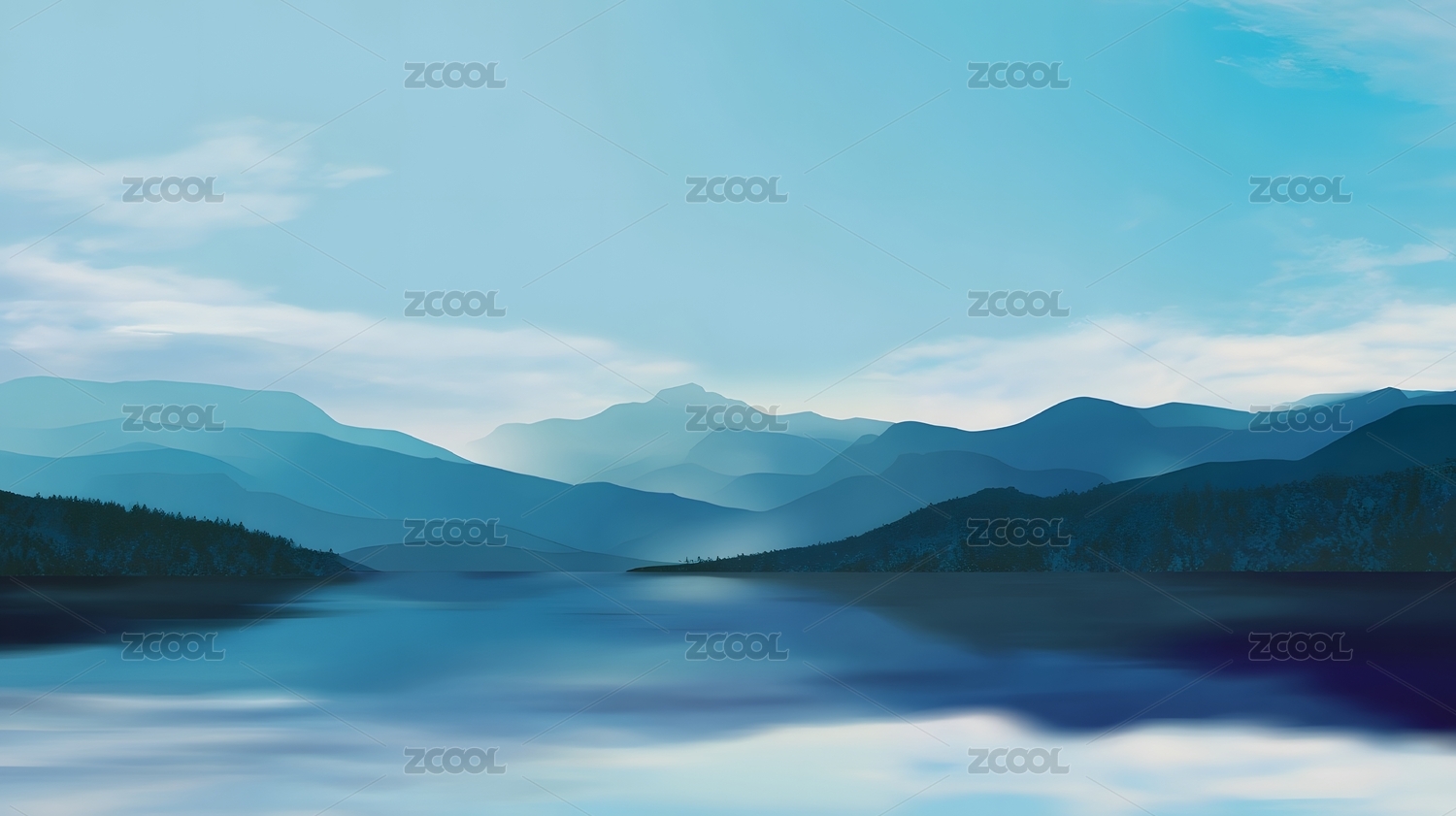 湖面山水风景插画