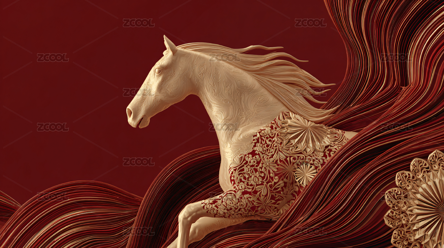 红金,骏马,立体,装饰,艺术,国风,纹理,质感,典雅,创意