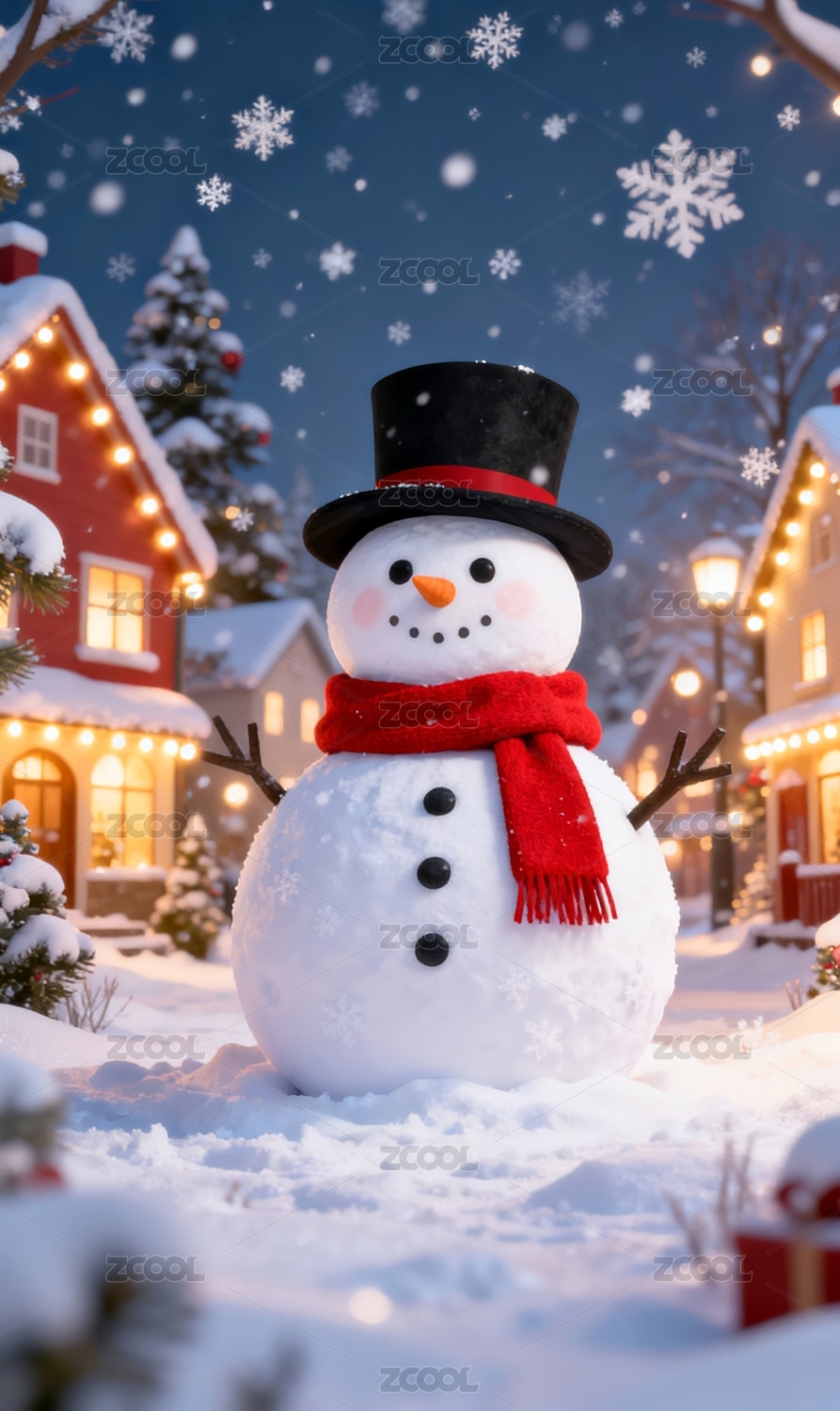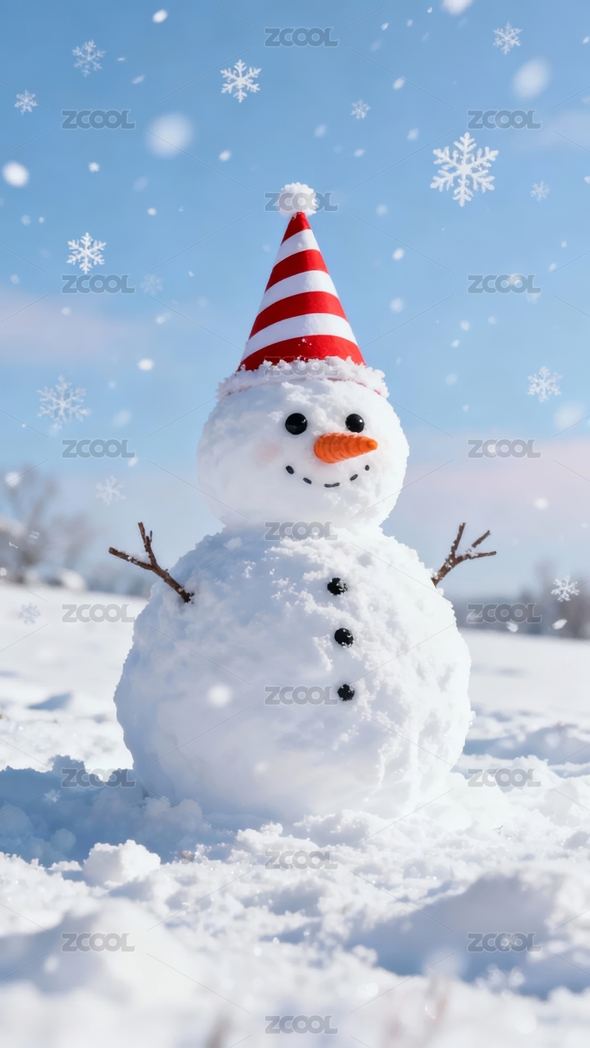 雪人,雪花,雪景,冬季,寒冷,雪地,插画,可爱,节日,圣诞