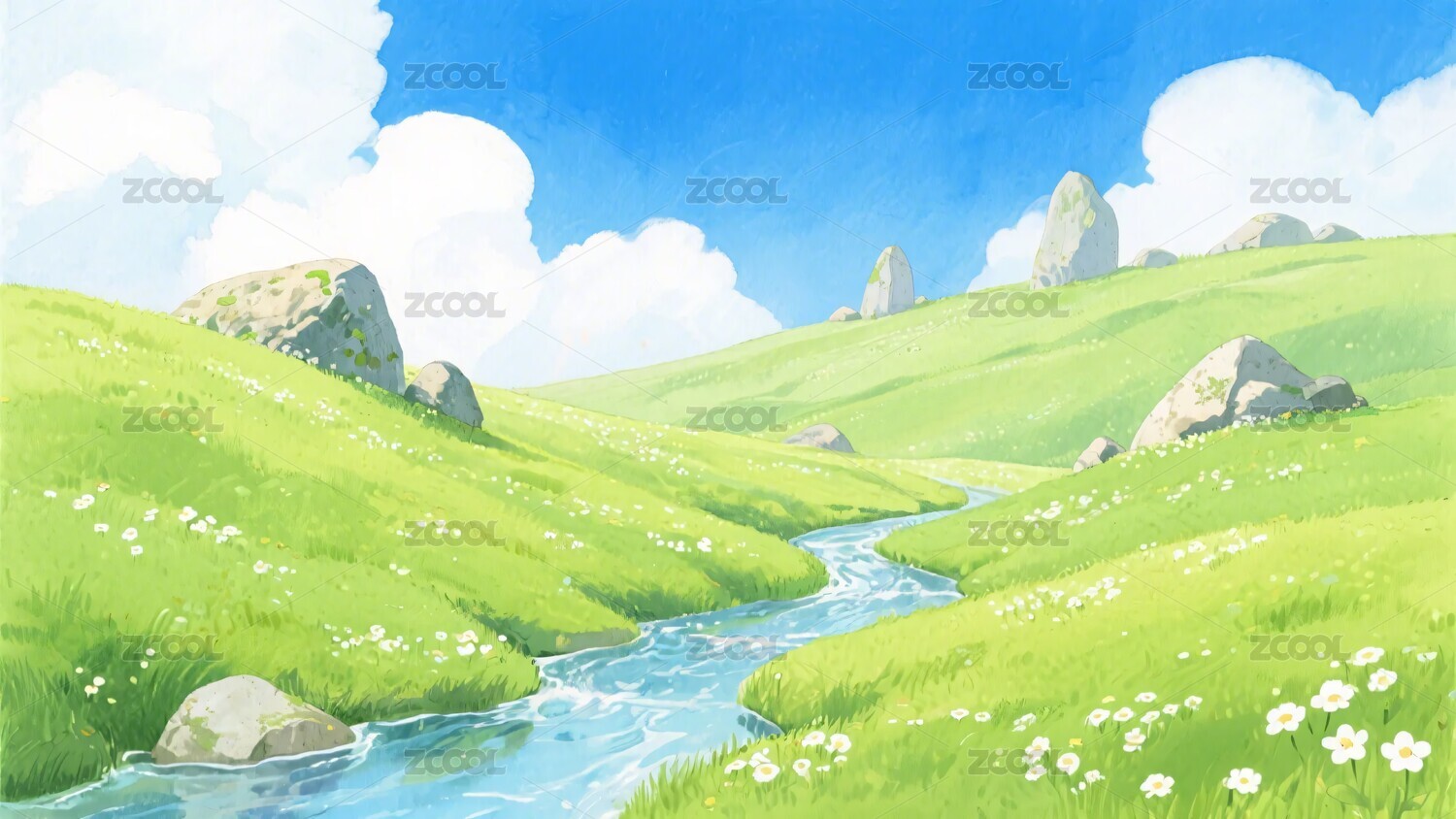 风景插画河流草地