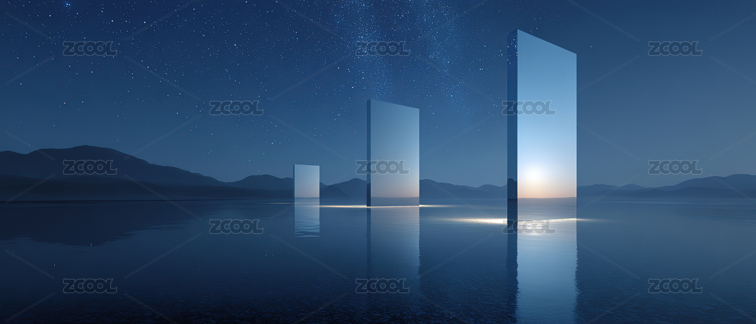 自然,抽象,宁静,星空,宇宙,光芒,神秘,深蓝,光柱,倒影