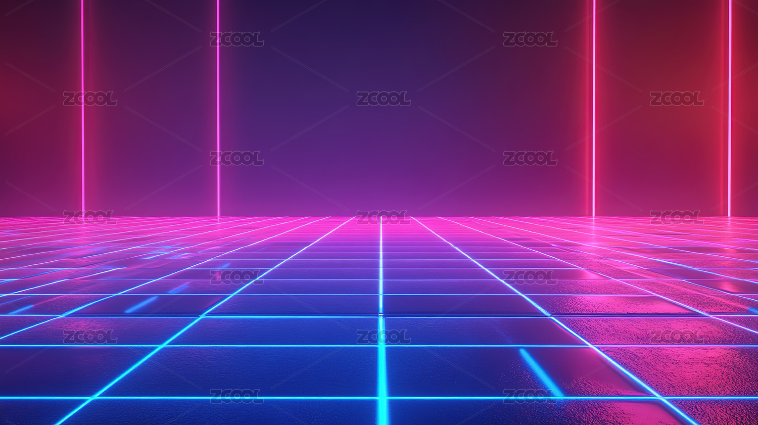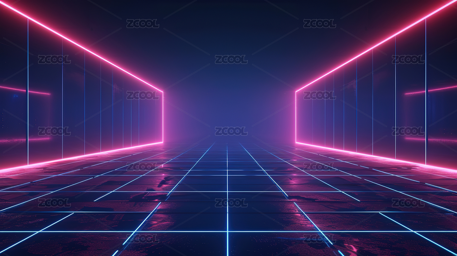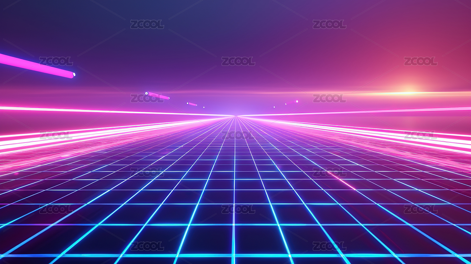 霓虹,未来,科技,场景,网格,地面,色彩,空间,抽象,现代