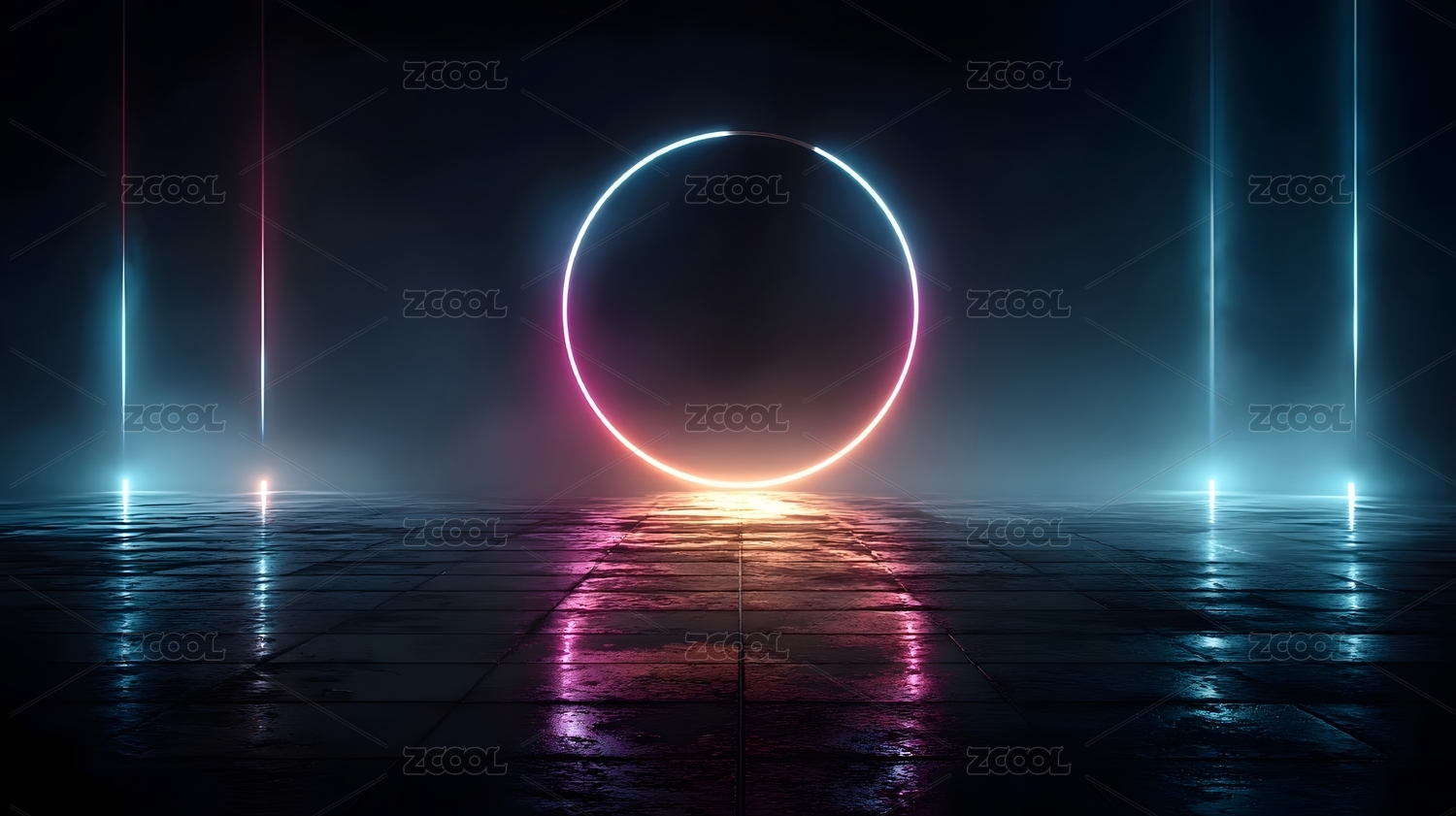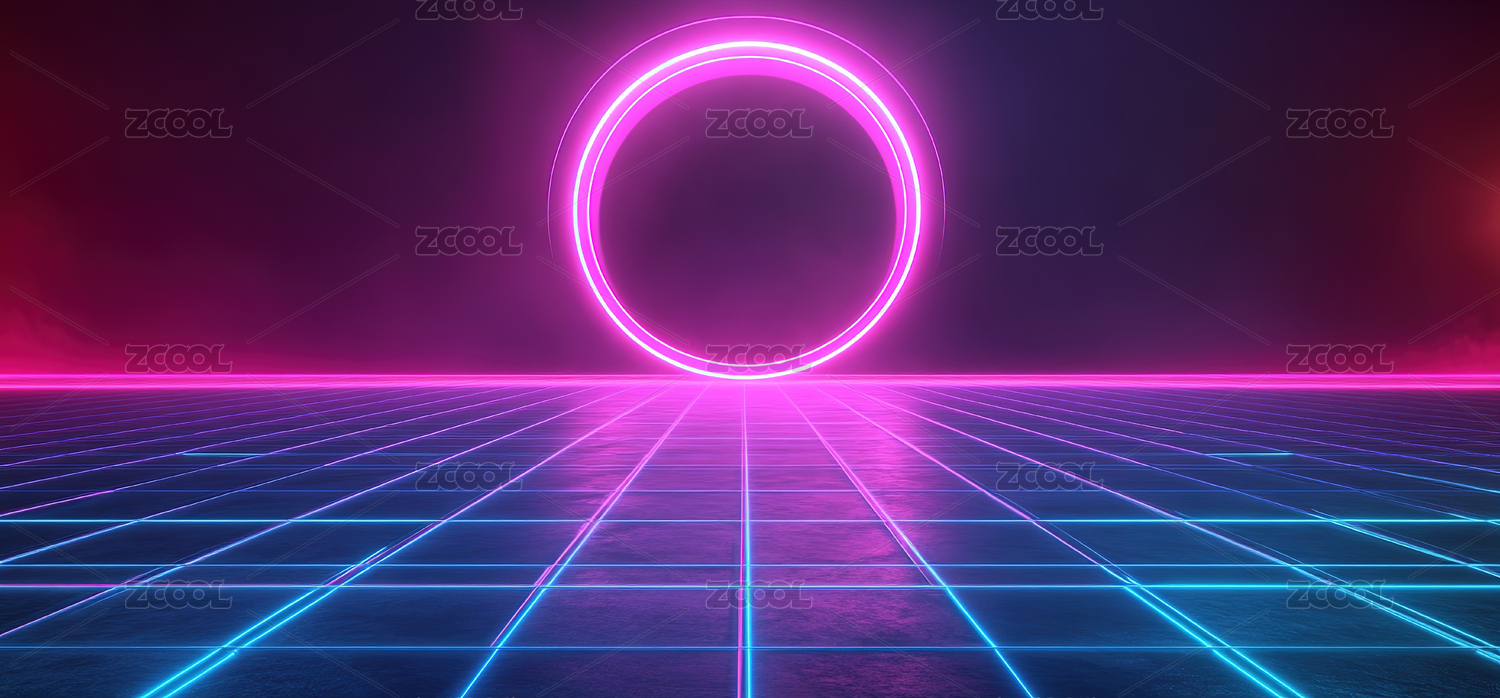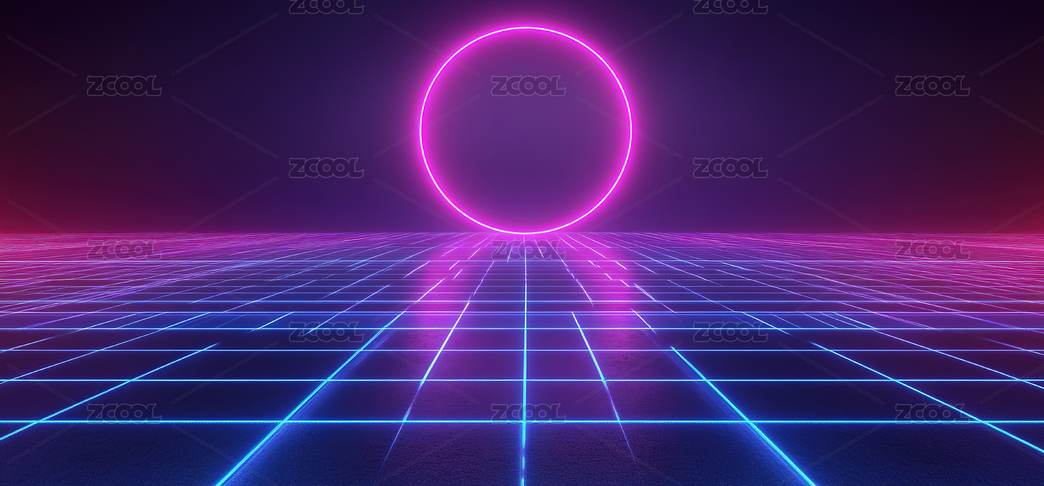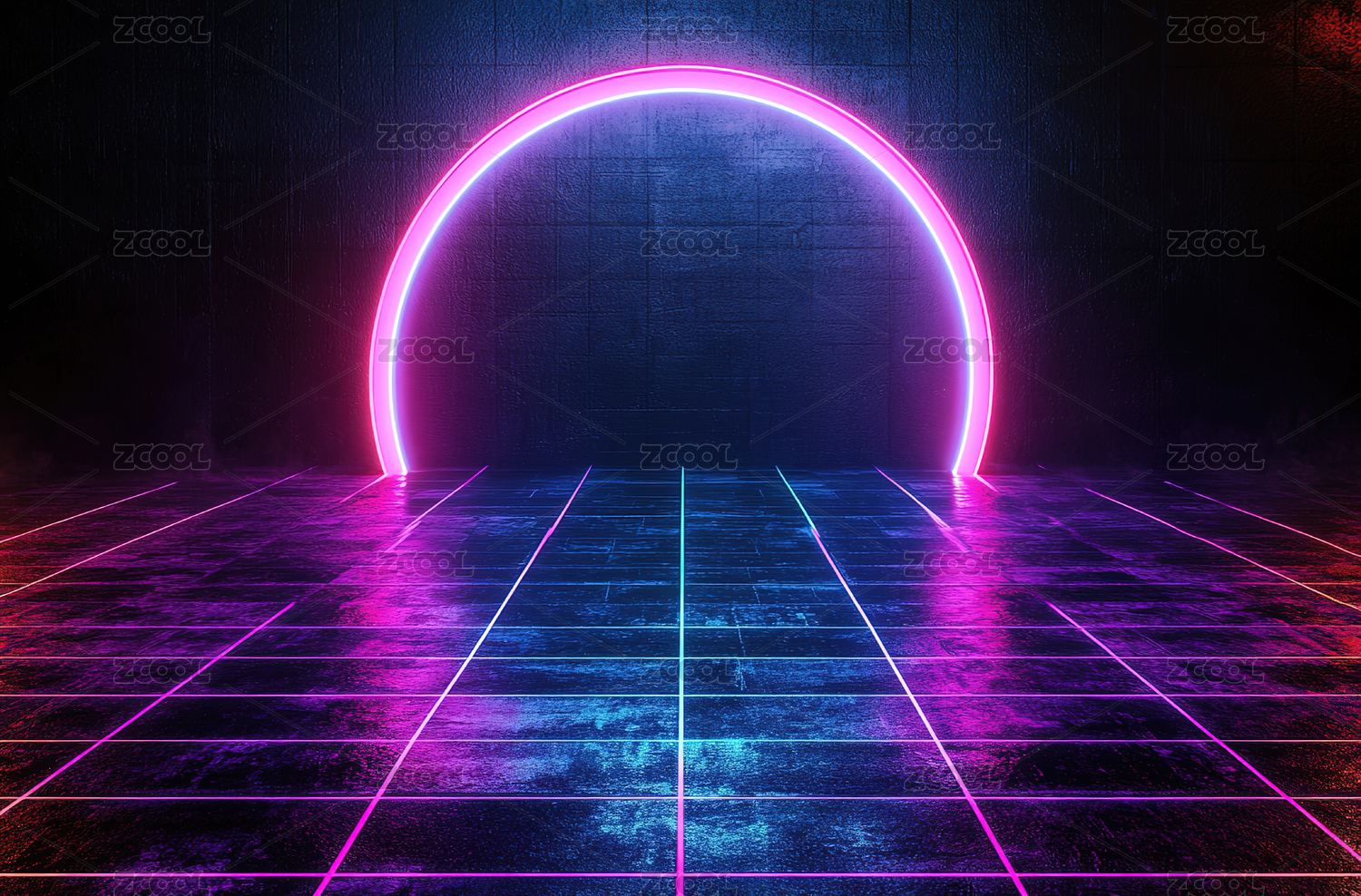 霓虹,未来,科技,场景,网格,地面,色彩,空间,抽象,现代