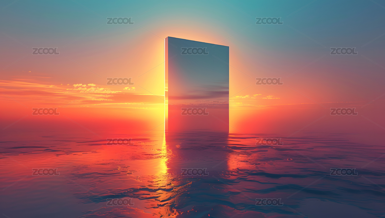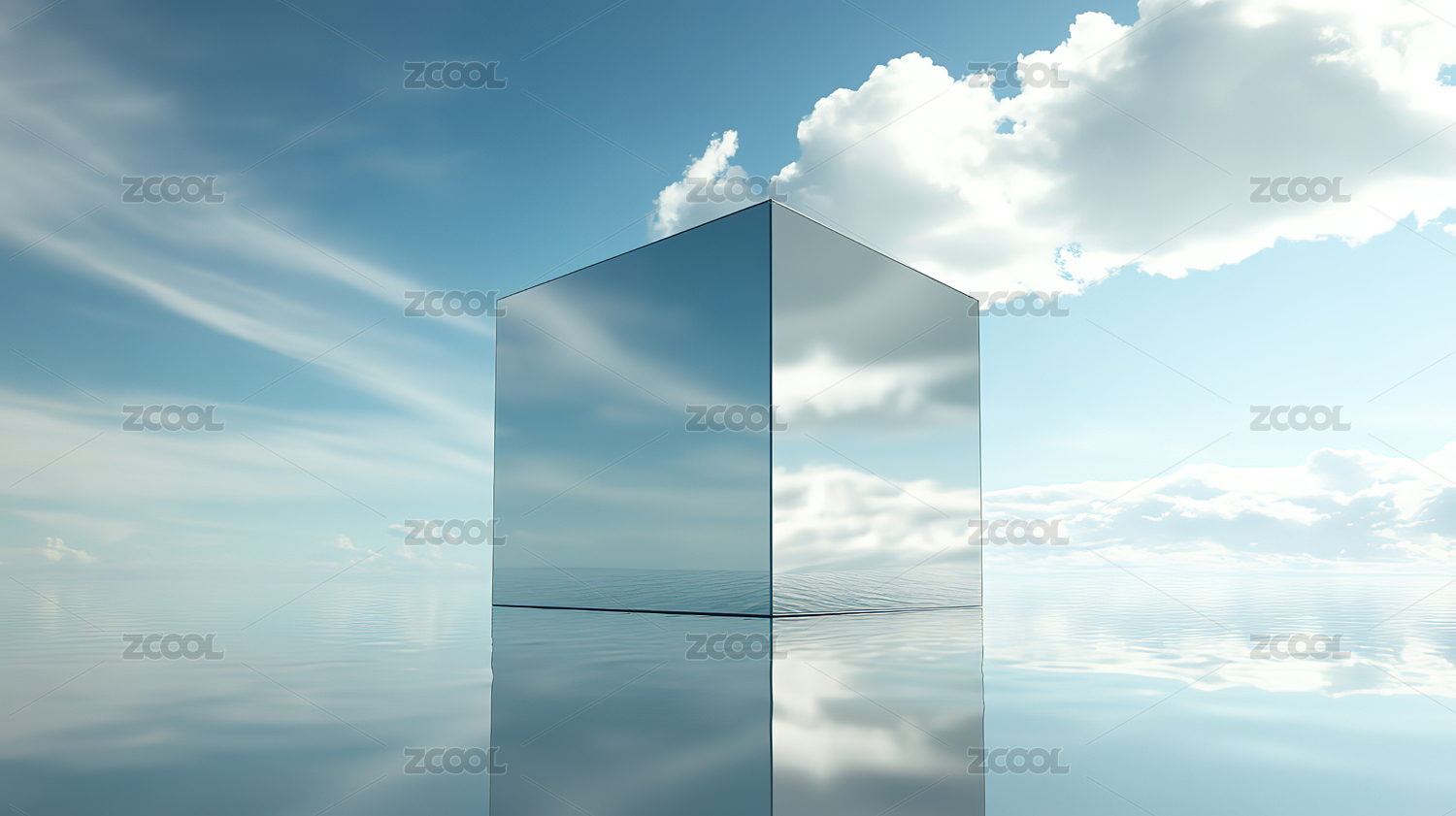 立方体,水面,平静,透明,几何,背景,概念,海报,壁纸,倒影