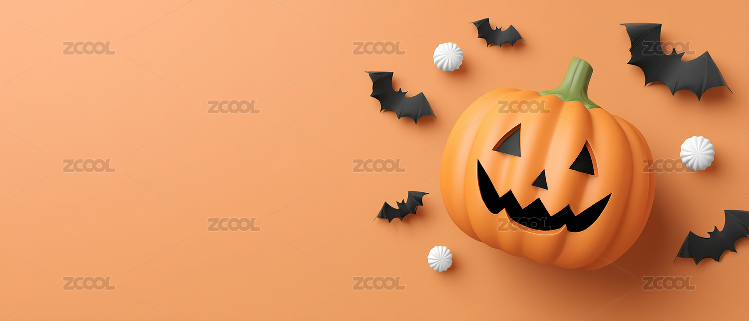 万圣节,南瓜灯,背景,海报,广告,AIGC,节日,南瓜,气球,蝙蝠