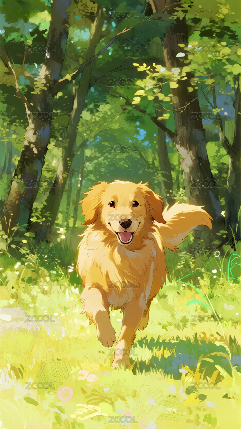 小狗,插画,动物,宠物,狗狗,动物插画,背景,森林,树叶,带项链