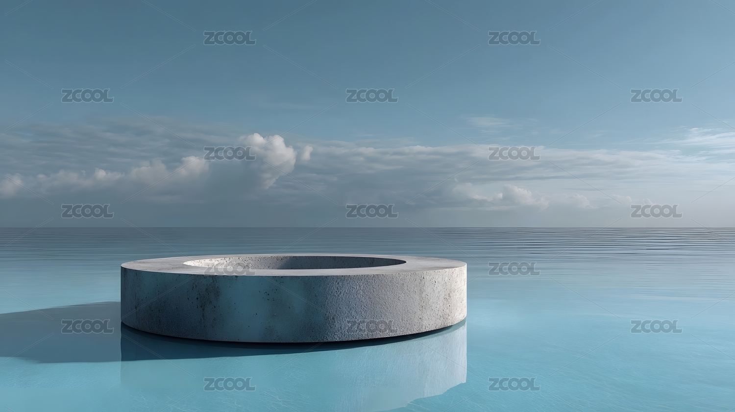 海上圆形平台与蓝天白云