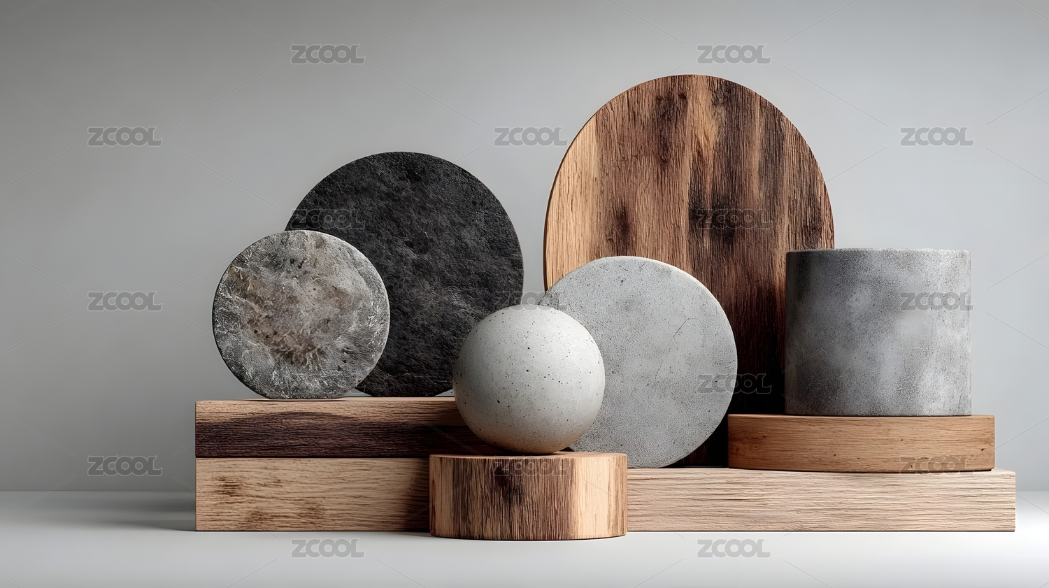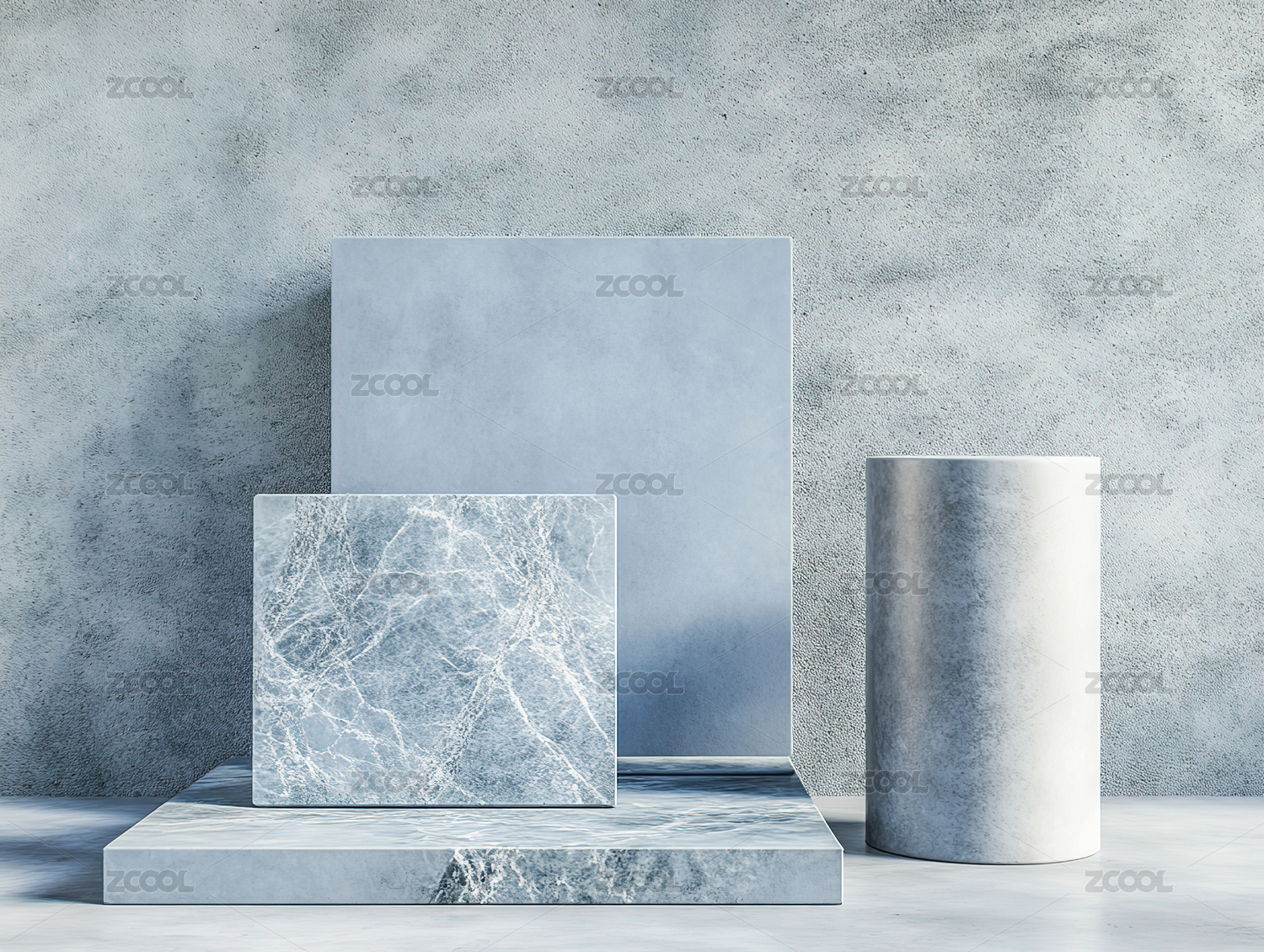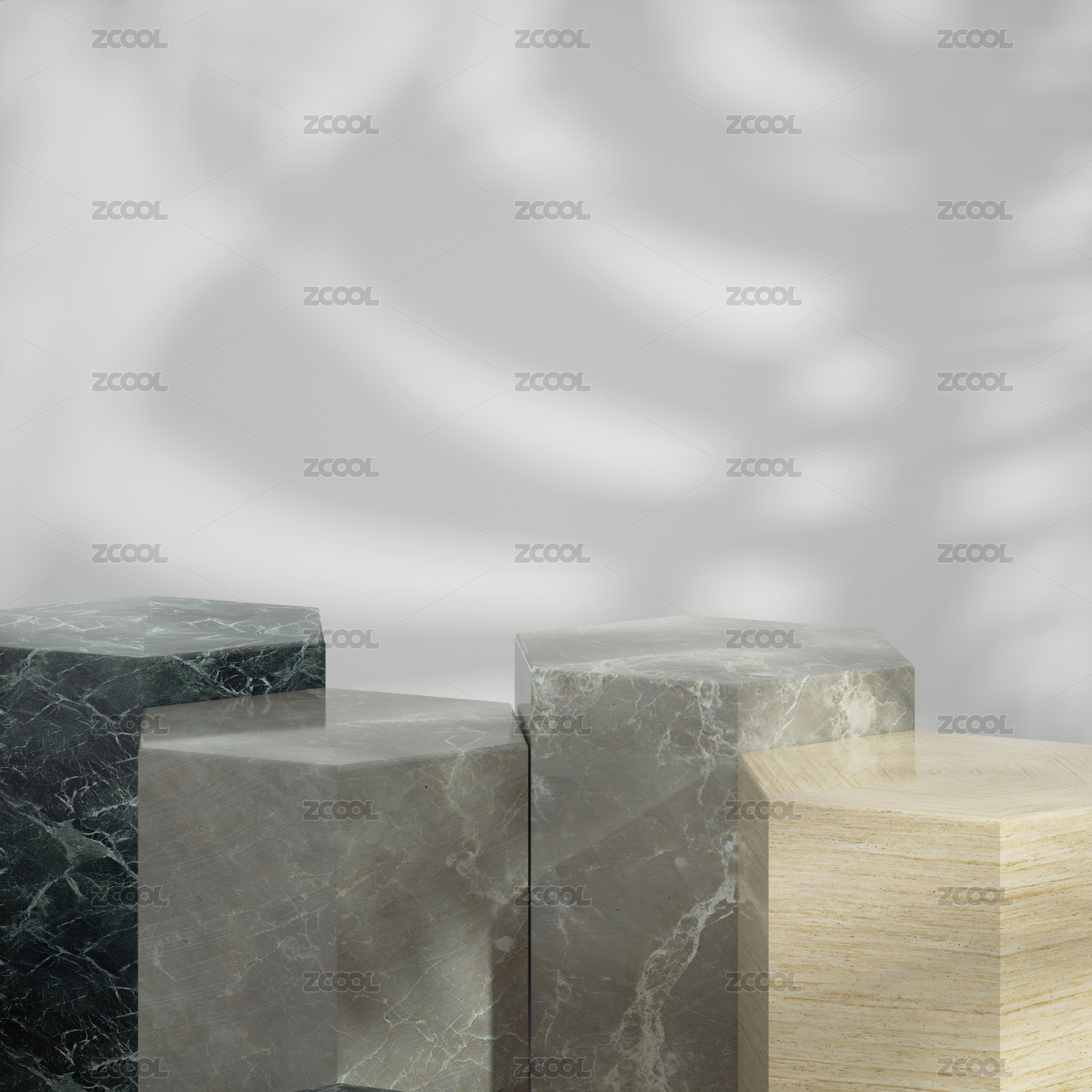 大理石以及木制的六边形蜂巢状的柱形产品展示台