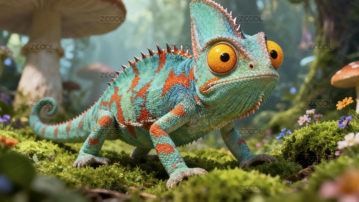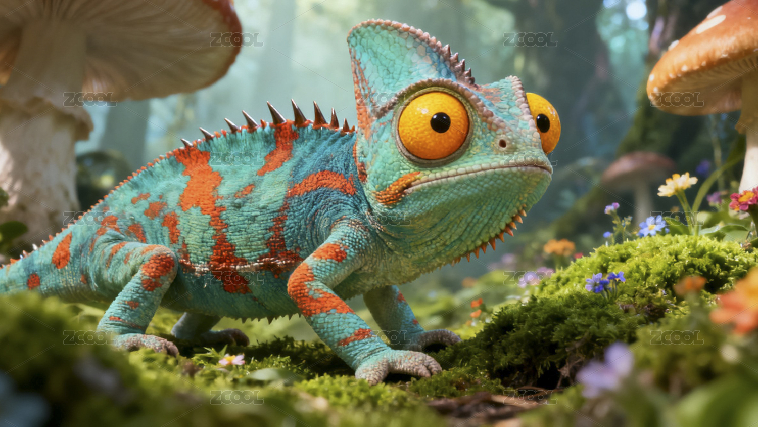 变色龙,卡通,森林,动物,可爱,萌宠,爬行动物,野生动物,自然,生物