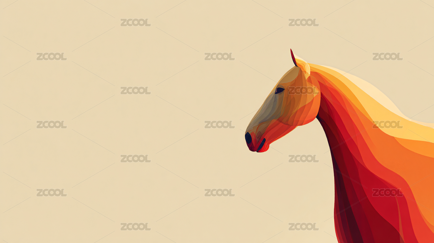 马年,春节,梦幻,渐变,骏马,贺岁,插画,色彩,艺术,简约