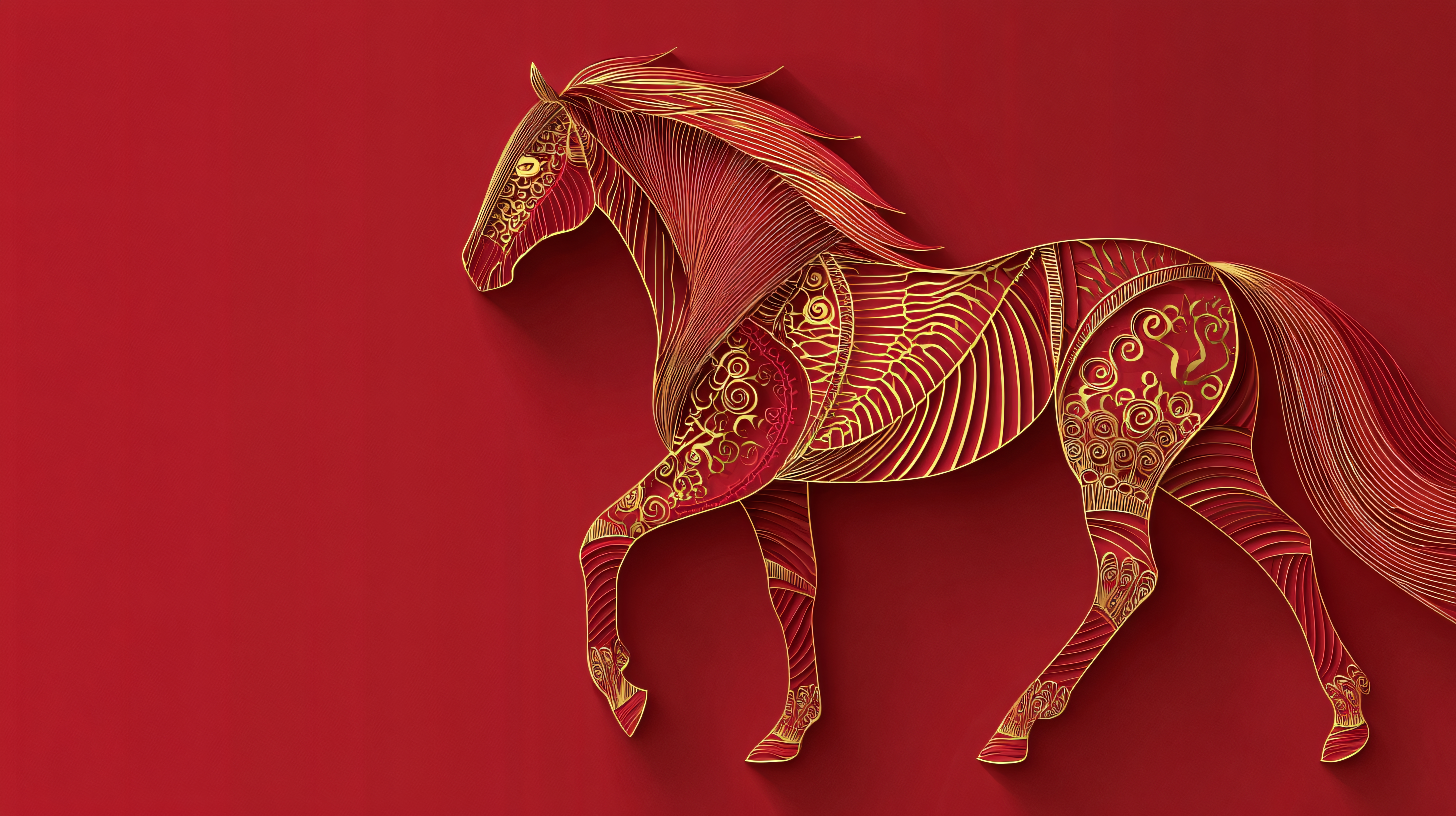 马年,春节,剪纸,骏马,贺春,国风,插画,祥云,吉祥,喜庆