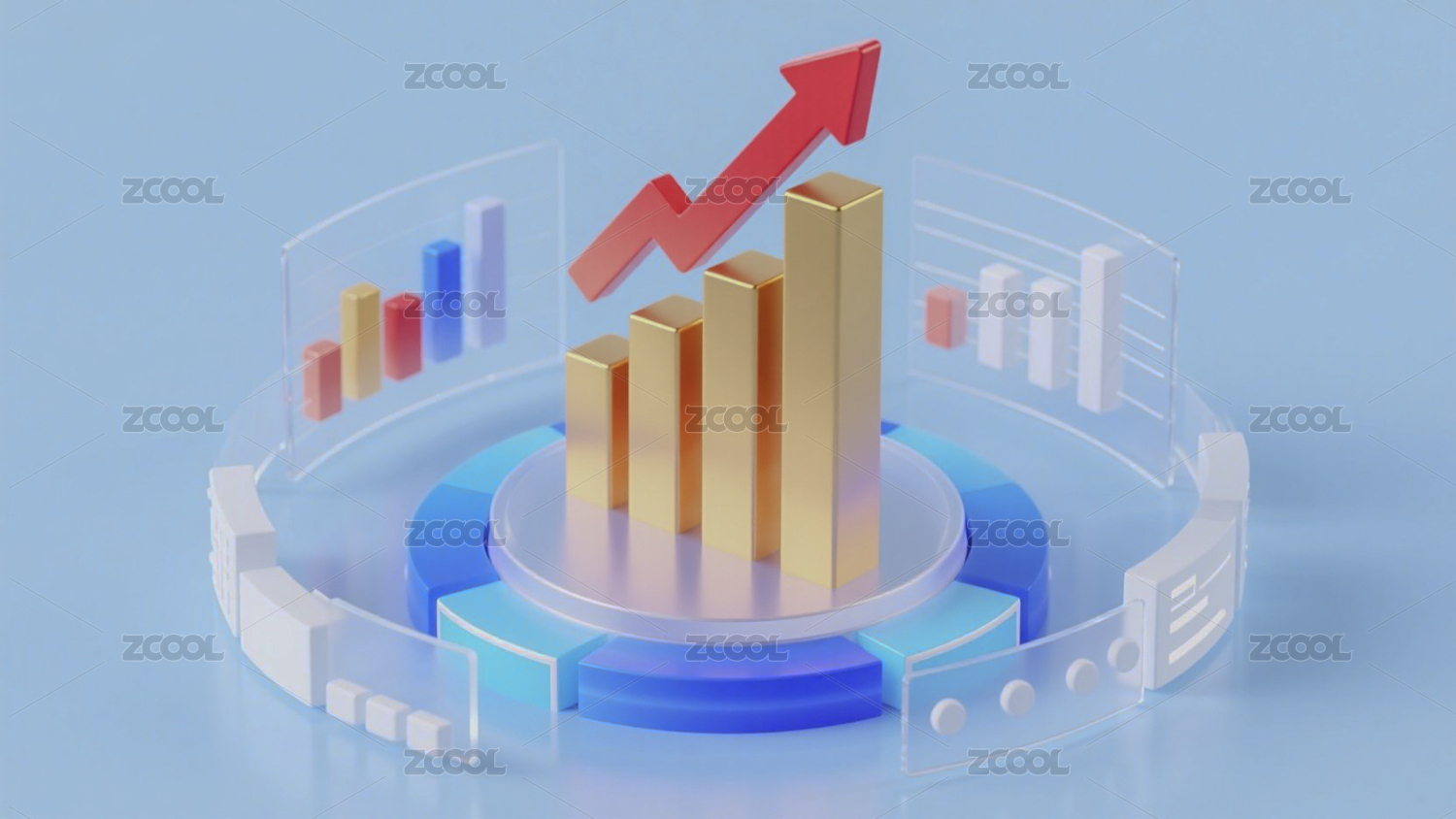 增长,图表,立体,模型,金色,上升,箭头,数据,商务,科技